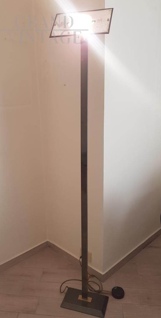 Vintage Relco floor lamp from the 1980s in chromed steel with beautiful golden inserts, in good condition, working electrical components.