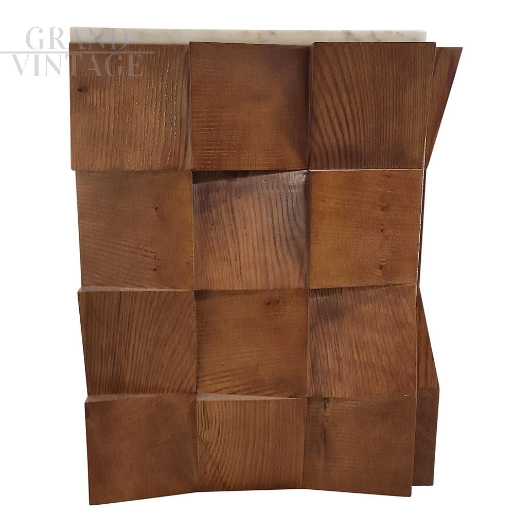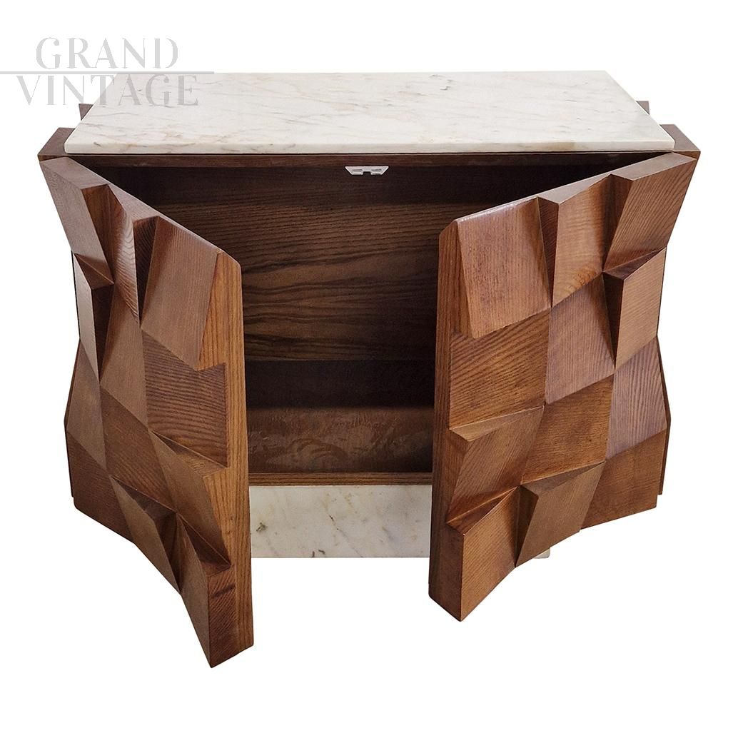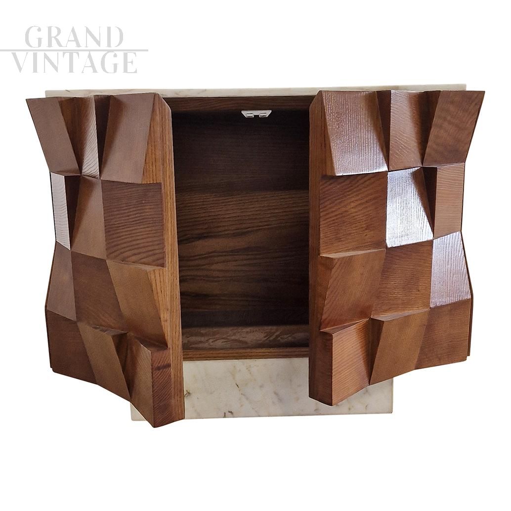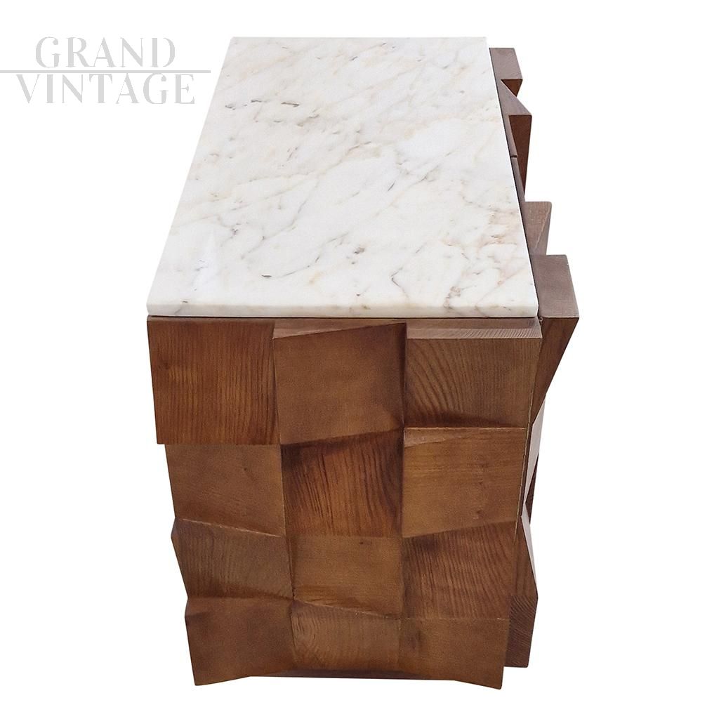 Vintage sideboard in walnut and white Carrara marble in brutalist style