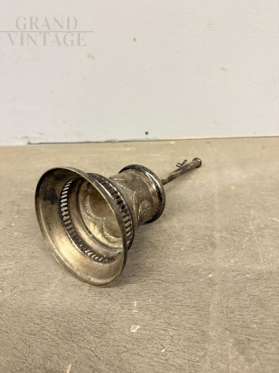 Vintage silver-plated metal bell-shaped piggy bank, 20th century, 29 x 12cm, in good condition.