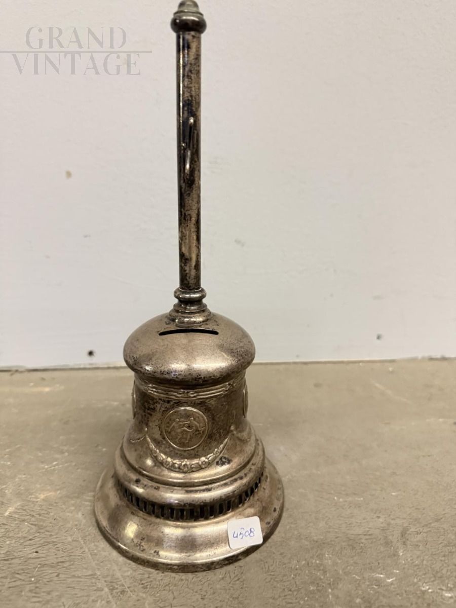Vintage silver metal money box bell, 20th century
