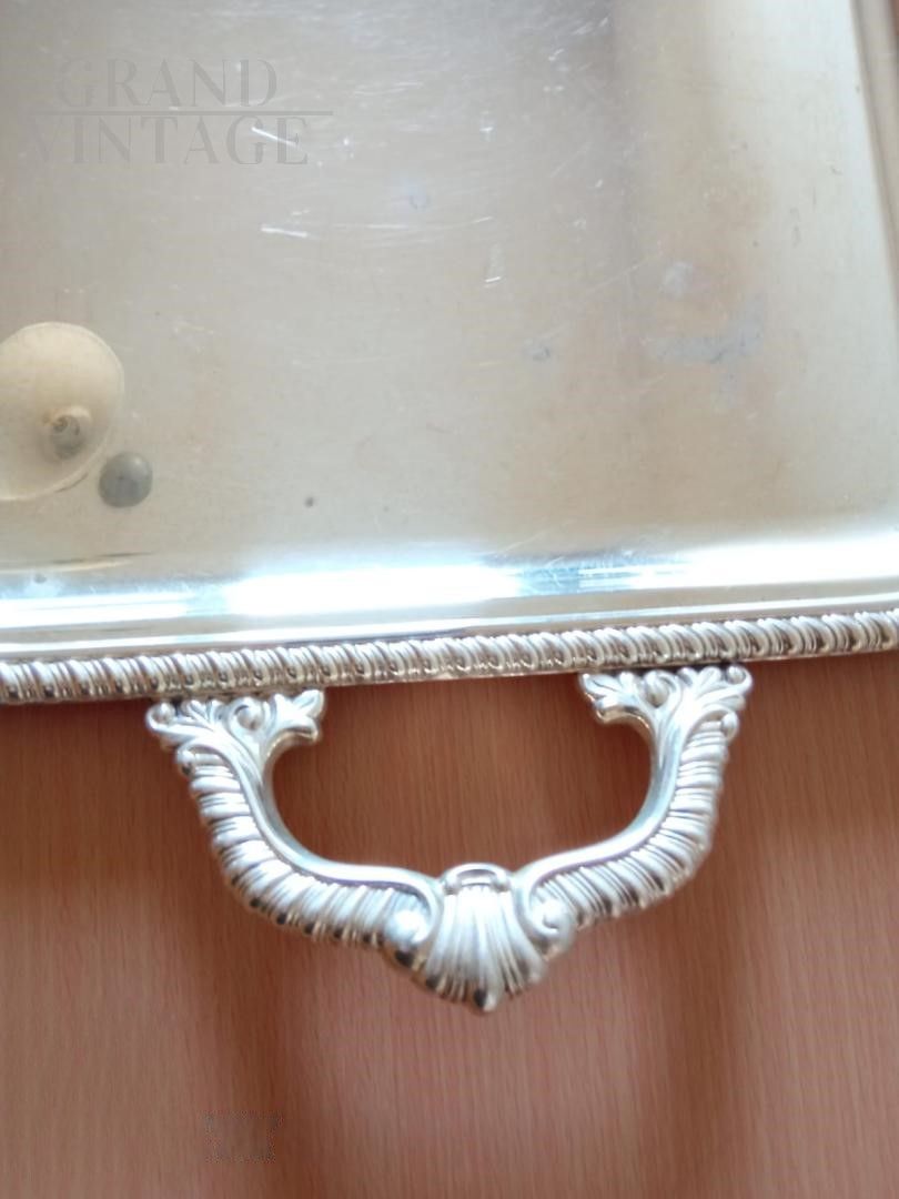 Vintage tray in 800 silver from the Greggio Silverware, finely worked with handles and twisted perimeter.