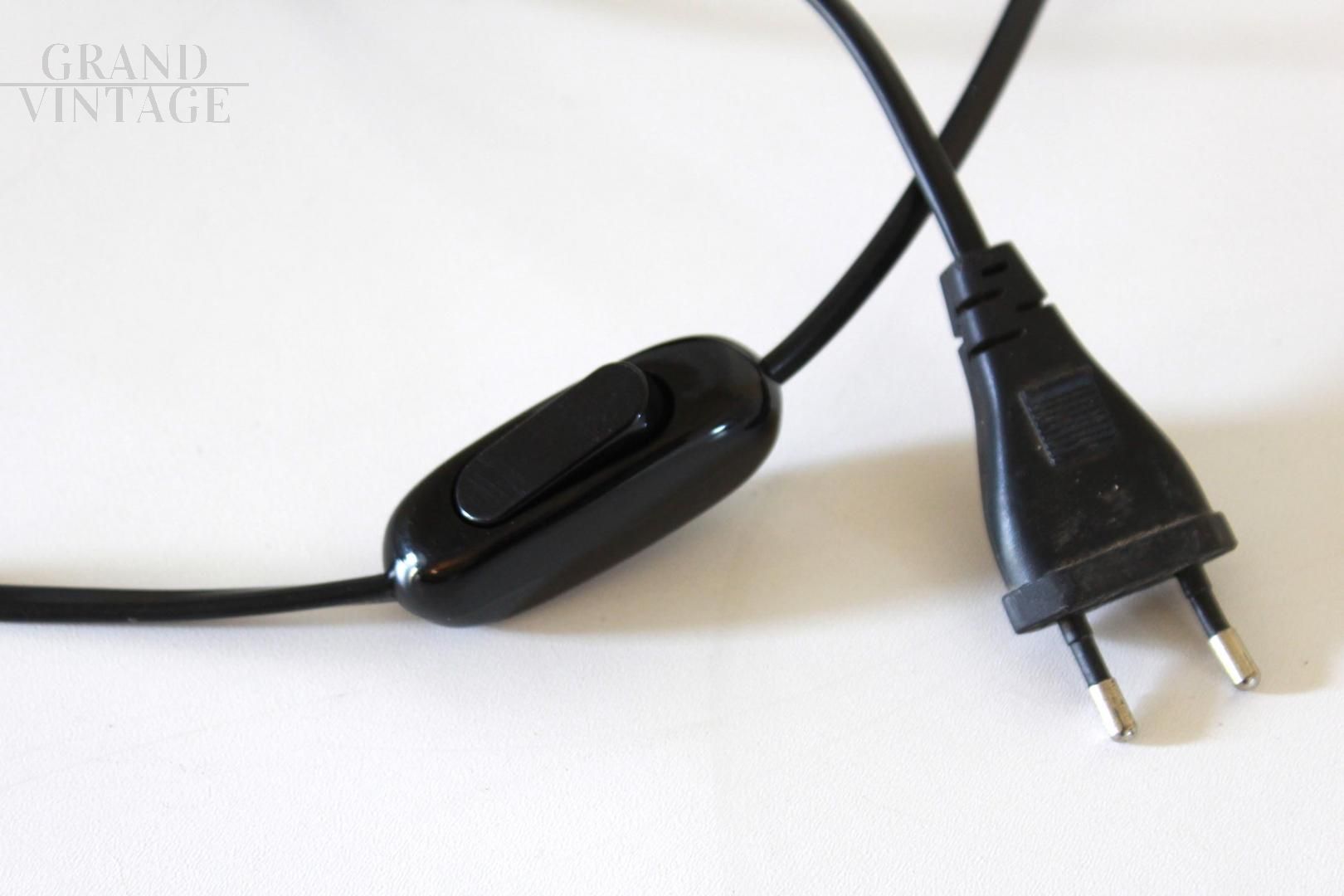Vintage sphere lamp from the 70s, with wooden structure and white plastic sphere lampshade. Electrical parts overhauled by a professional. In good condition, with only small signs of aging.