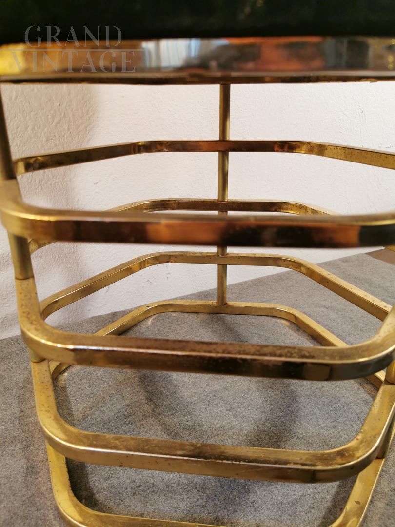 Elegant 1950s modern vintage stool with hexagonal spiral structure in brass and seat in black velvet.