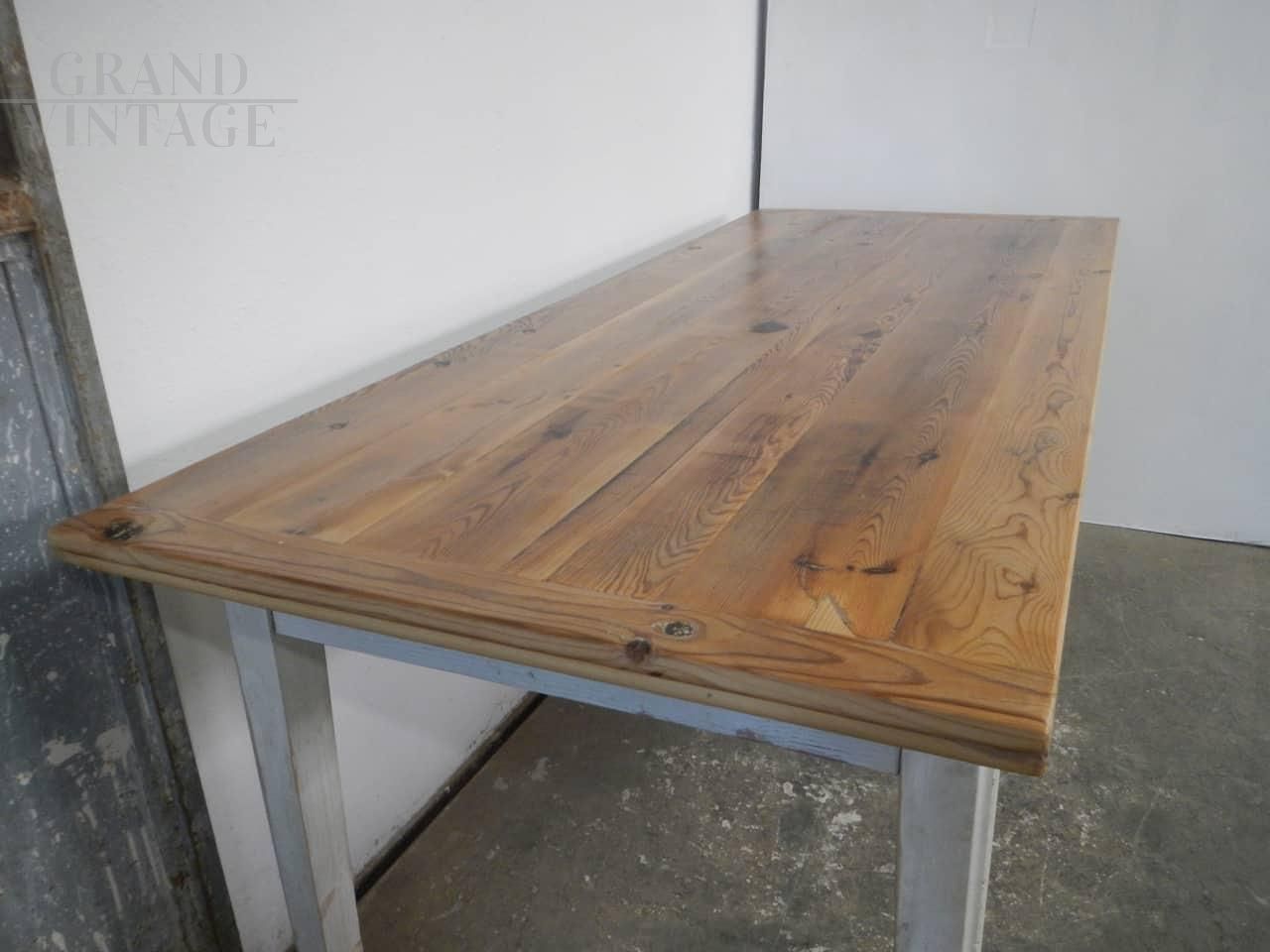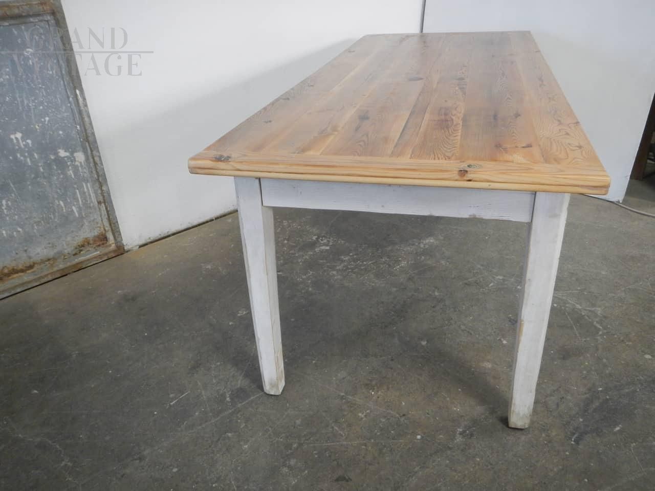 Vintage table in white lacquered fir with larch top, Italy 1970s