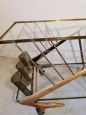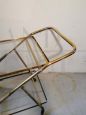 Vintage trolley with bottle holder, in brass and wood, 1950s