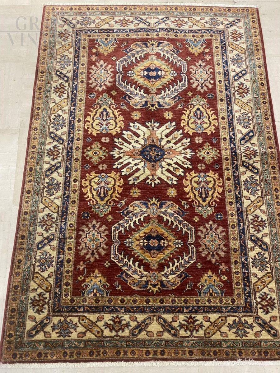 Uzbek carpet rug with warp and weft in cotton and pile in vegetable-dyed wool.