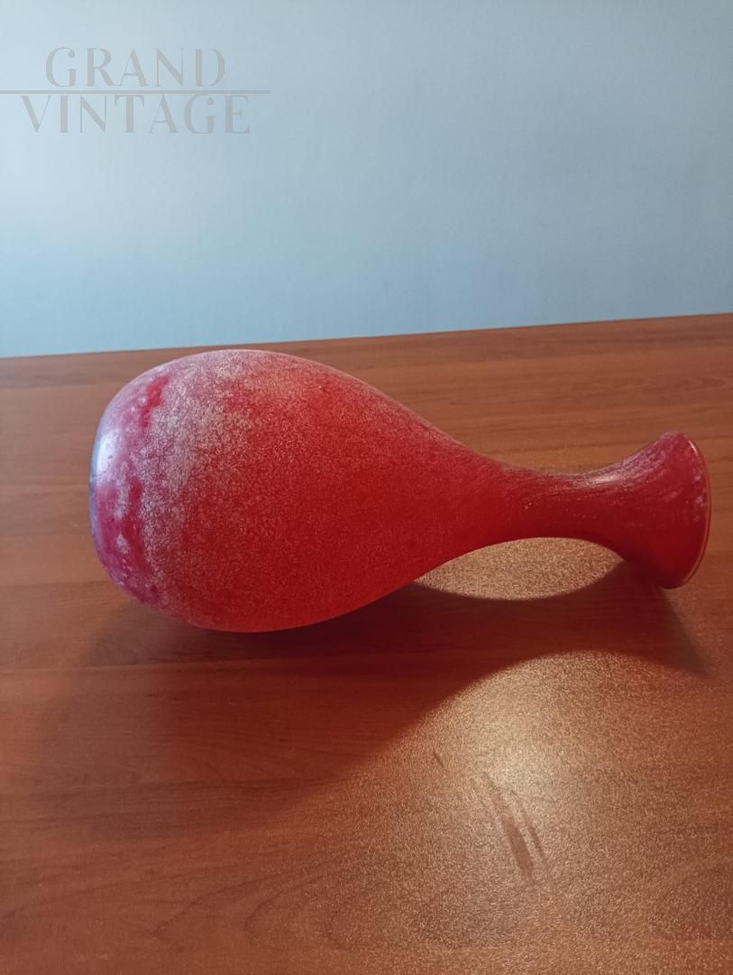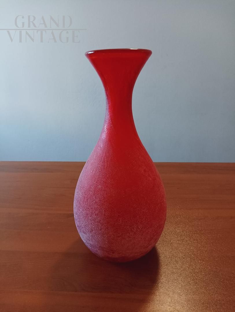Vintage vase in red satin Murano glass