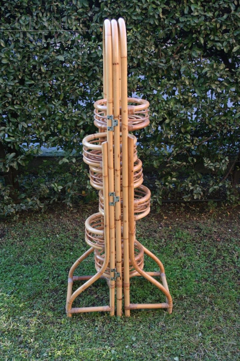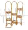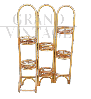 Vertical vintage bamboo planter, resealable, organized in 3 sections and with 6 flower baskets, perfect for climbing plants to form a nice room divider. Italy 60s - 70s.