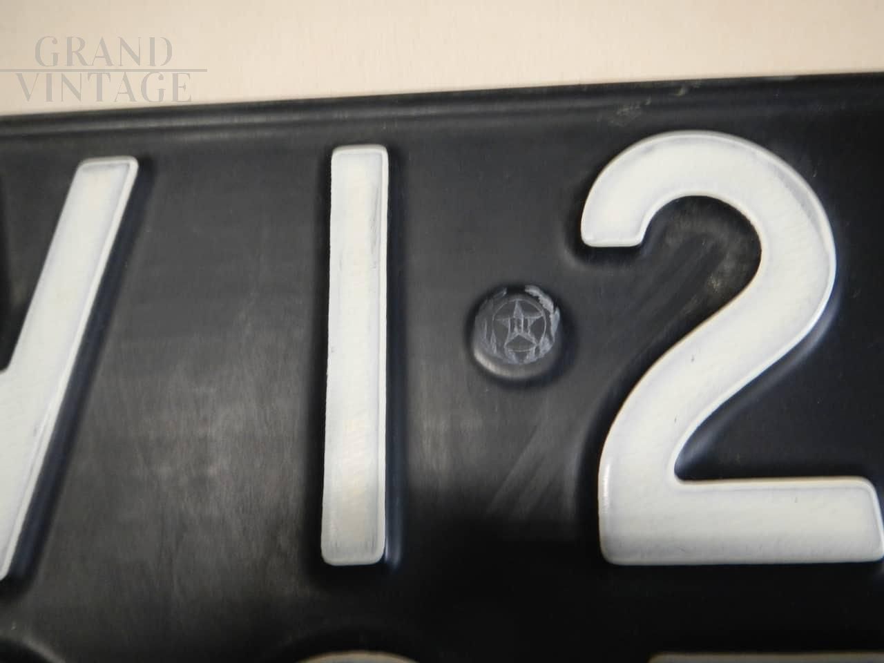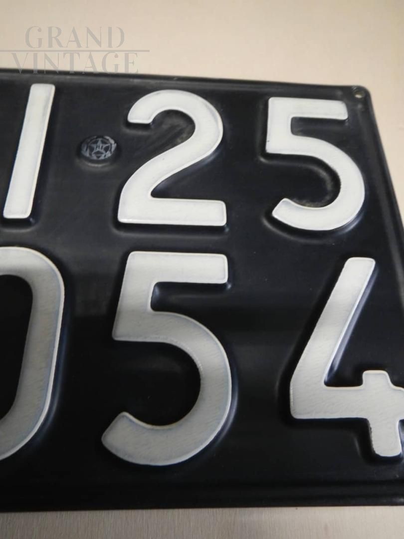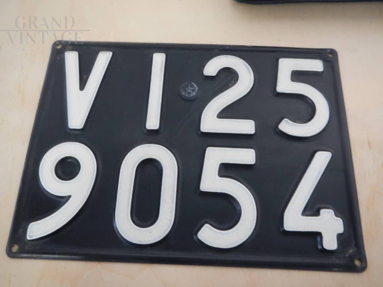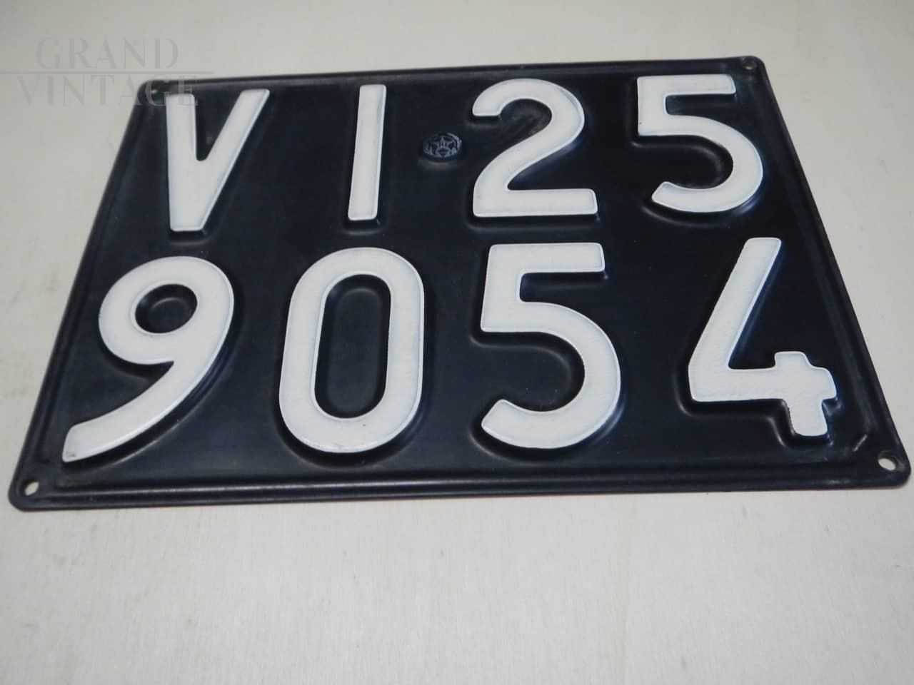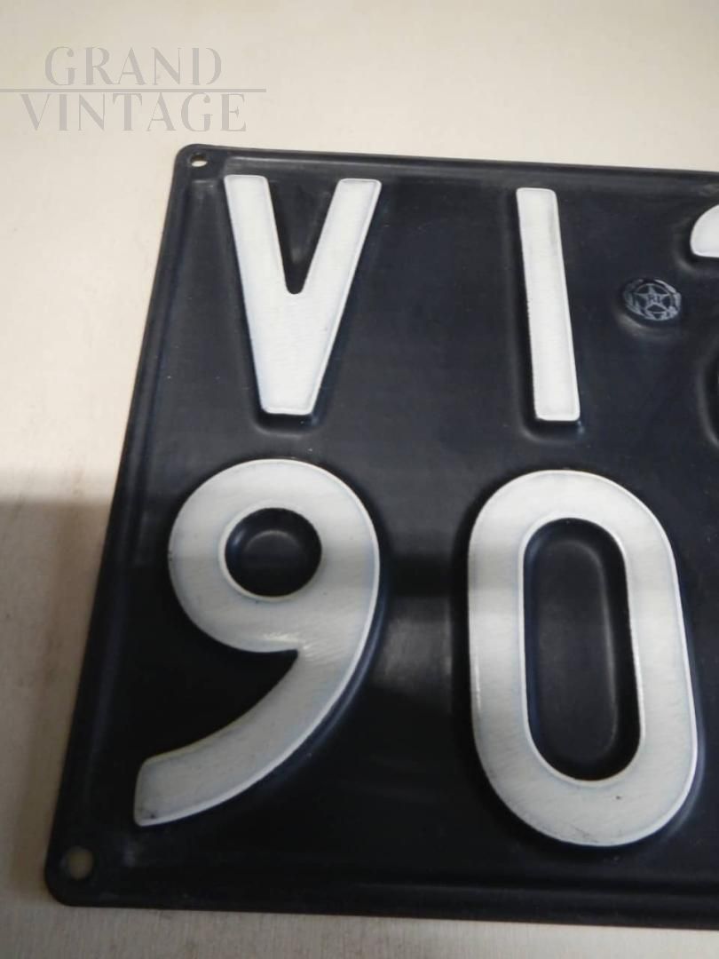 Vintage 1960s plastic car front license plate Vicenza VI25. The symbol of the Italian Republic appears, that is, a 5-pointed star inside a garland and with the letters RI in the center.