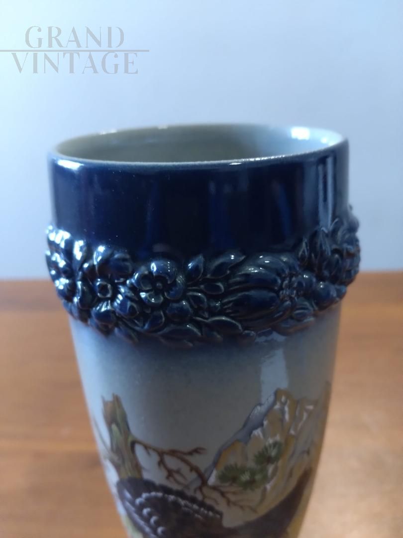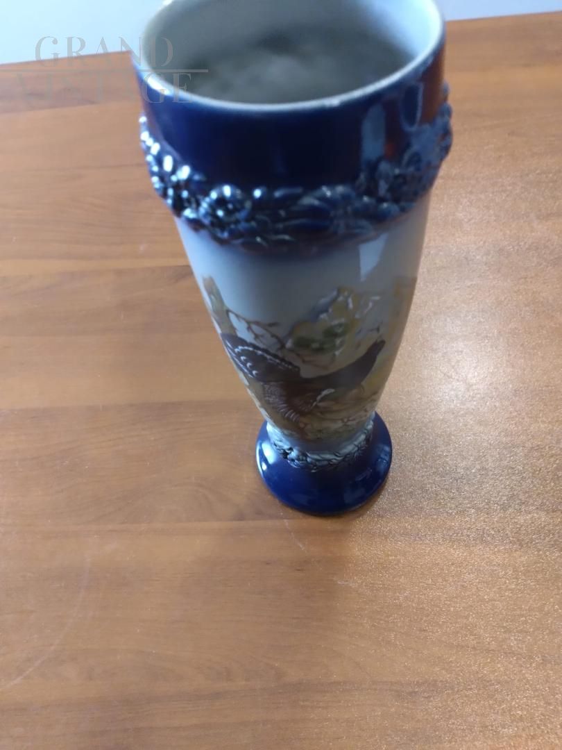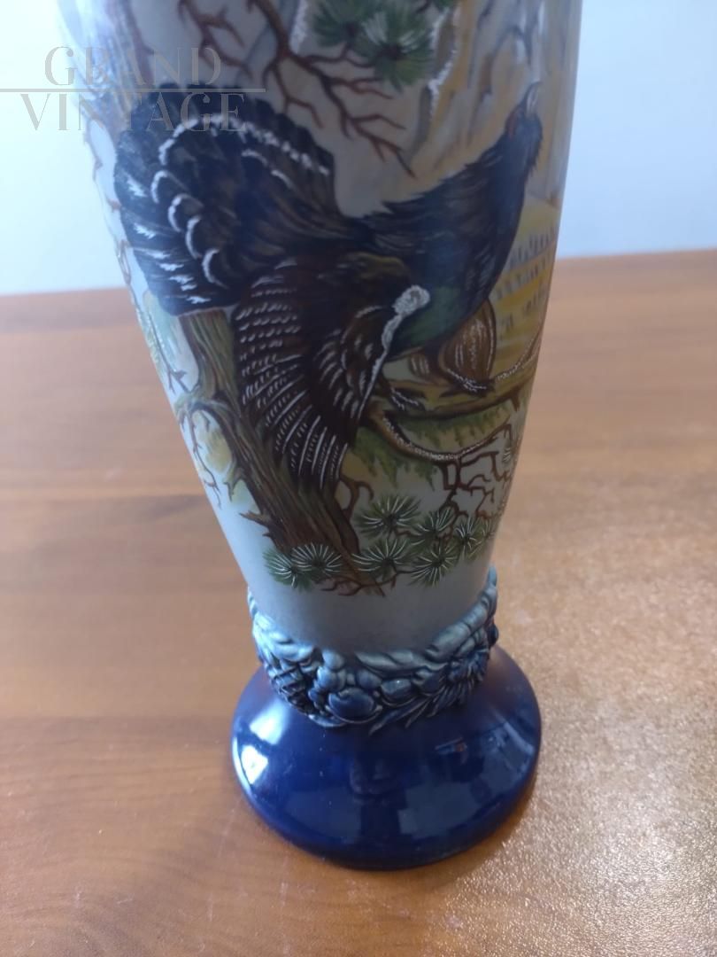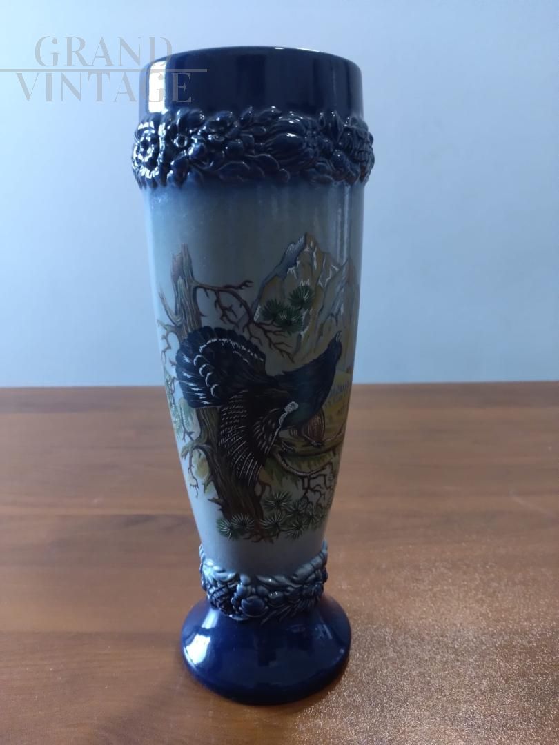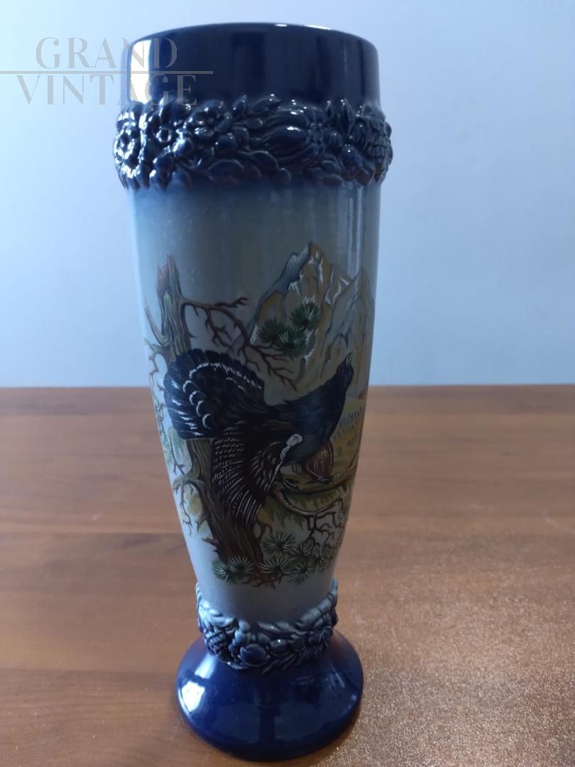 Beautiful vintage hand-crafted and hand-painted ceramic vase or beer mug with capercaillie, featuring the W. Germany brand at the base. The object is offered in its original condition, which is truly excellent but may require general restoration work.