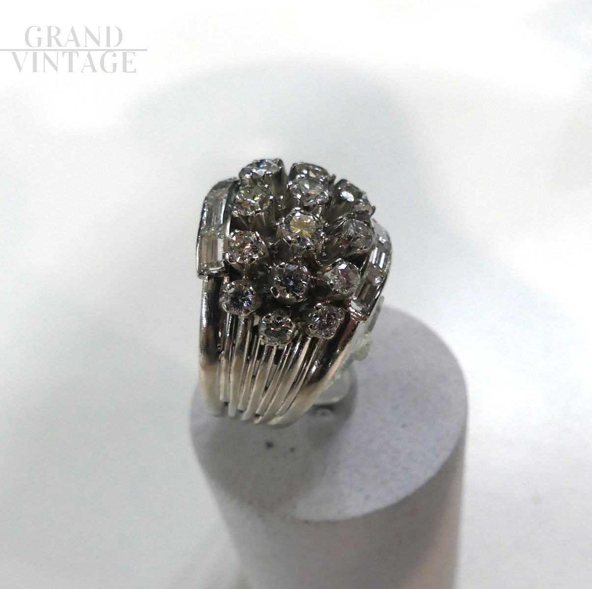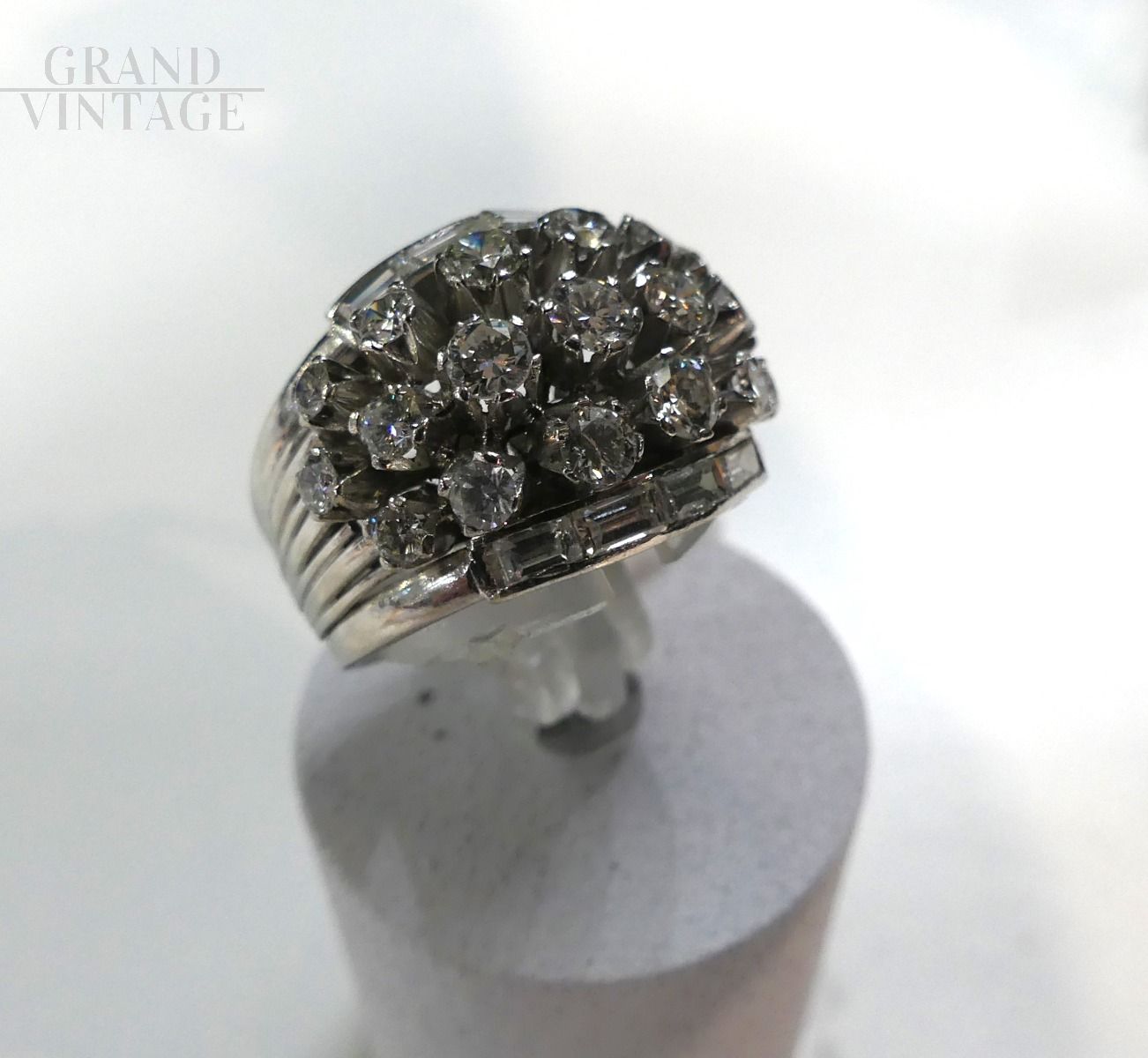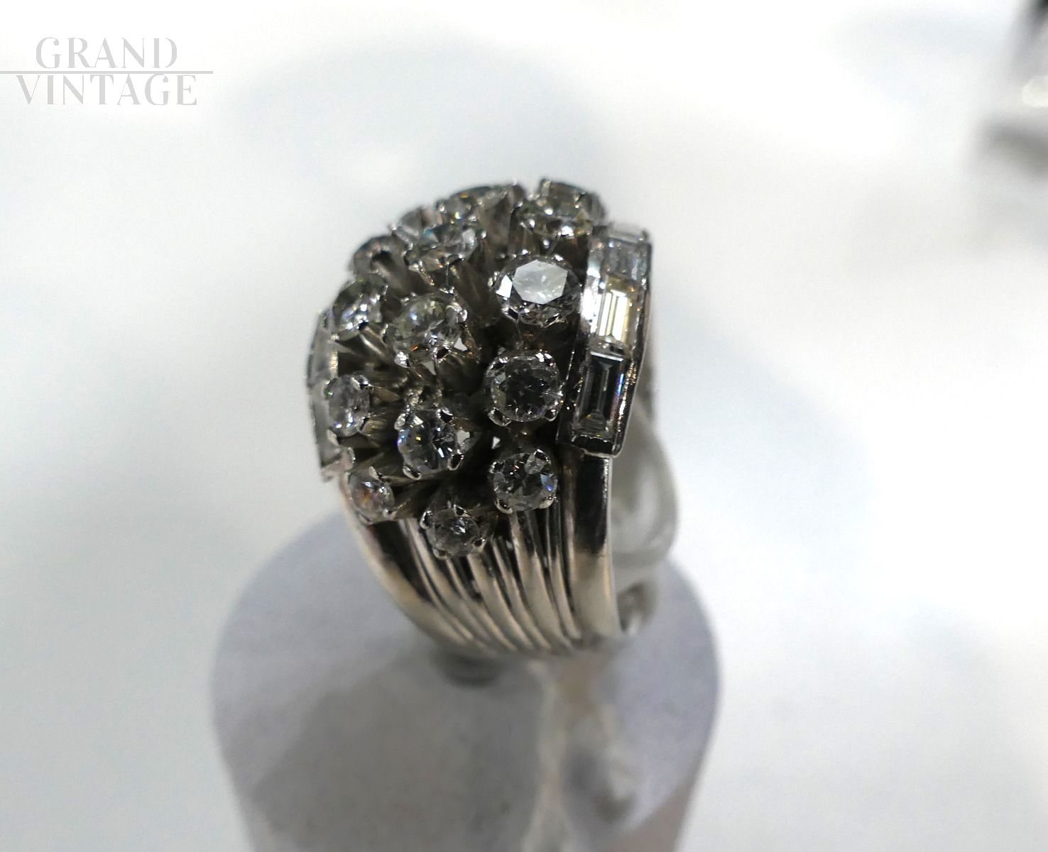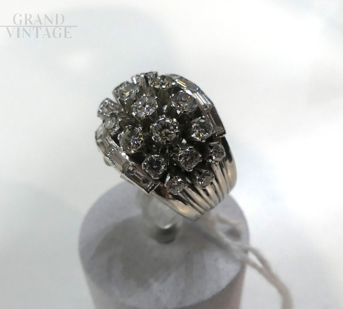 Vintage luxury ring in 18 kt white gold with 1.46 carat diamonds, 1970s. Italian size 14, French size 54, diameter 1.72 cm.