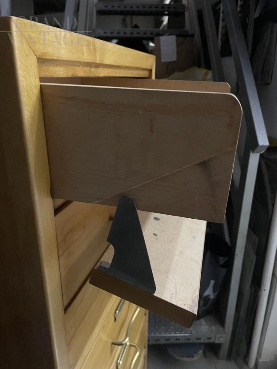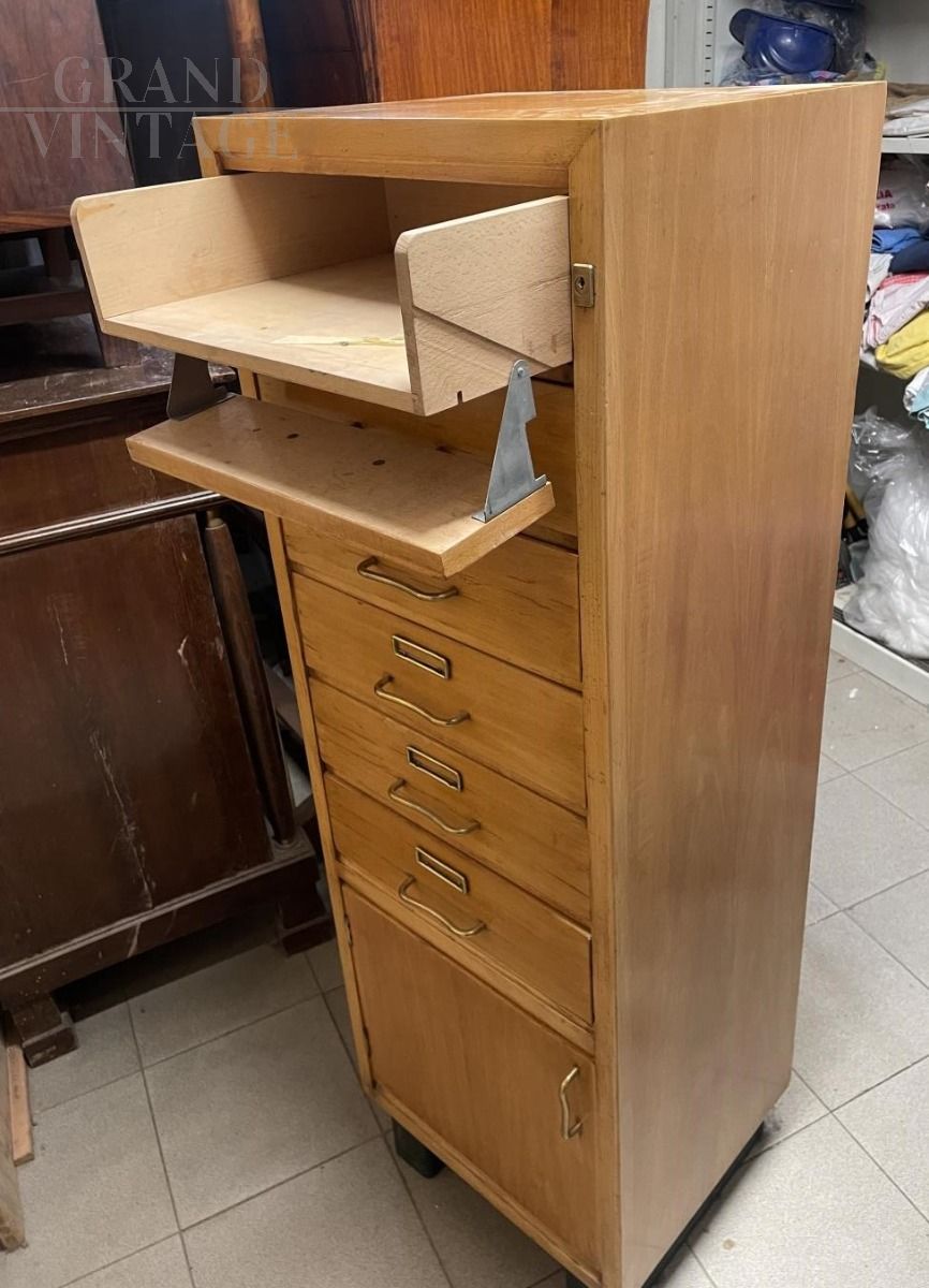 Vintage filing cabinet in maple wood with 6 drawers and a door at the base, 1970s, restored.