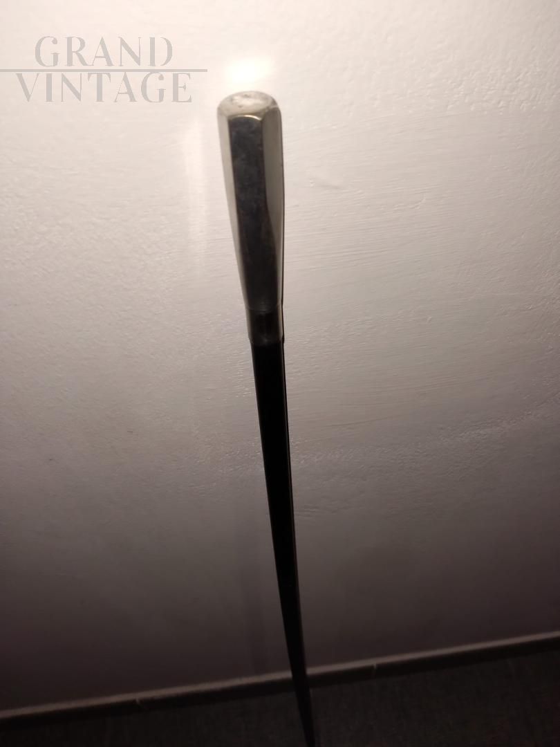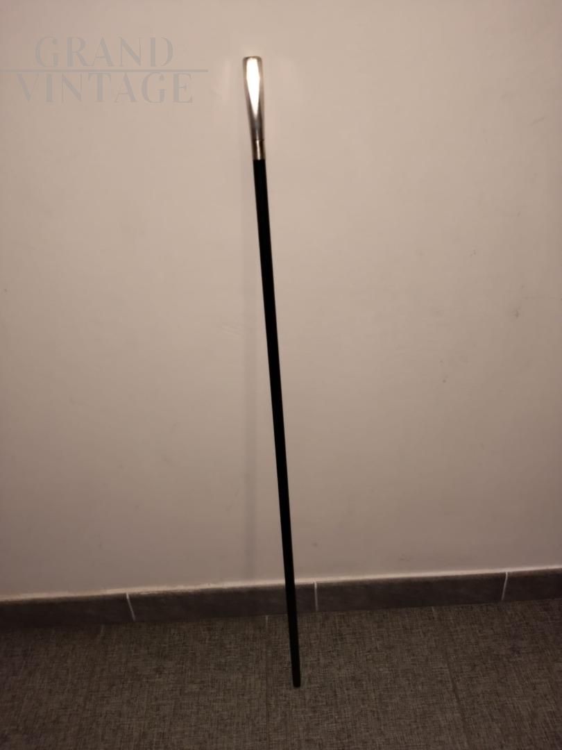 Walking stick in ebonized wood with silver handle
