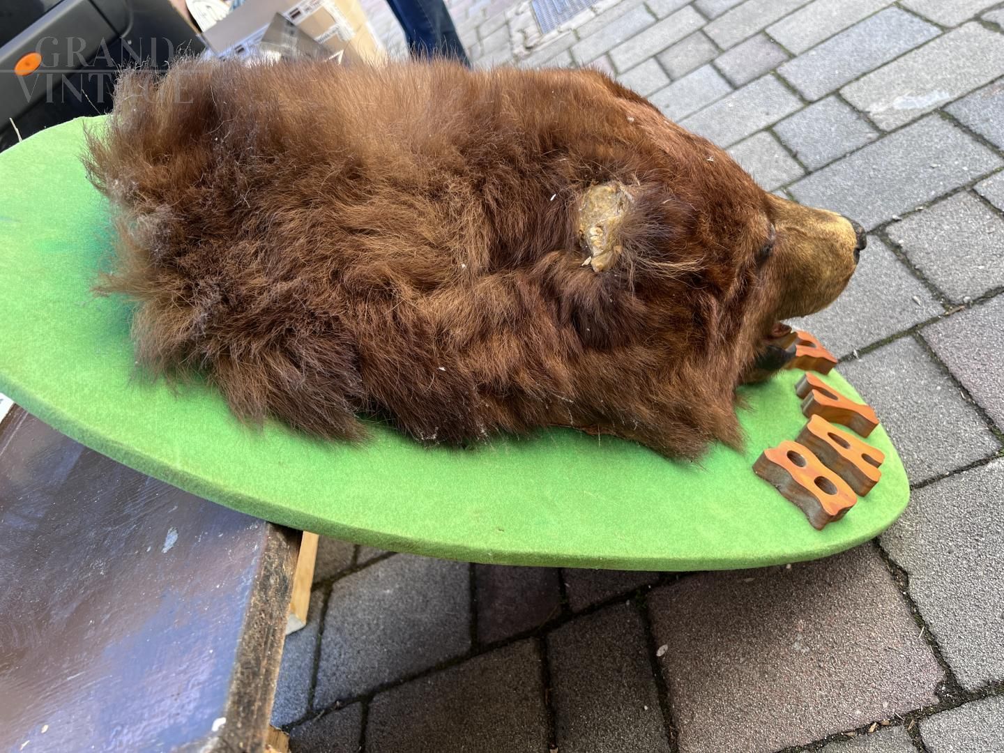 Wall bear head on wooden base