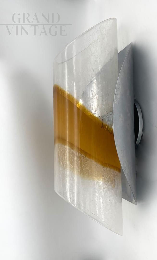 Wall lamp attributed to Esperia Brotto in amber and transparent Murano glass