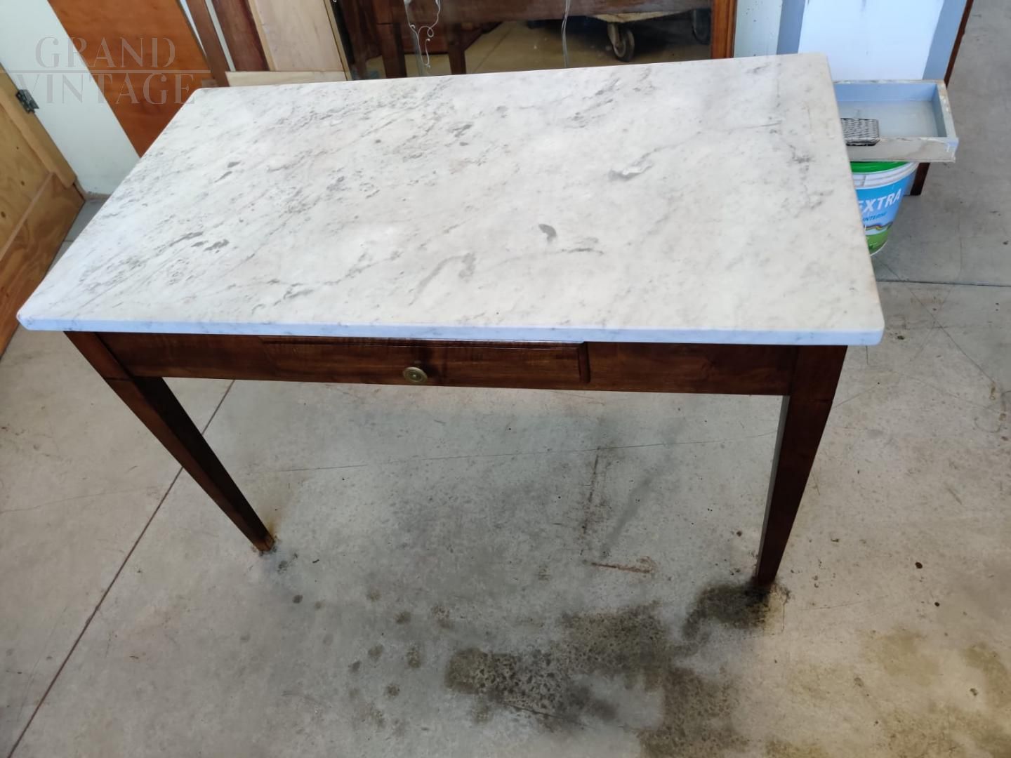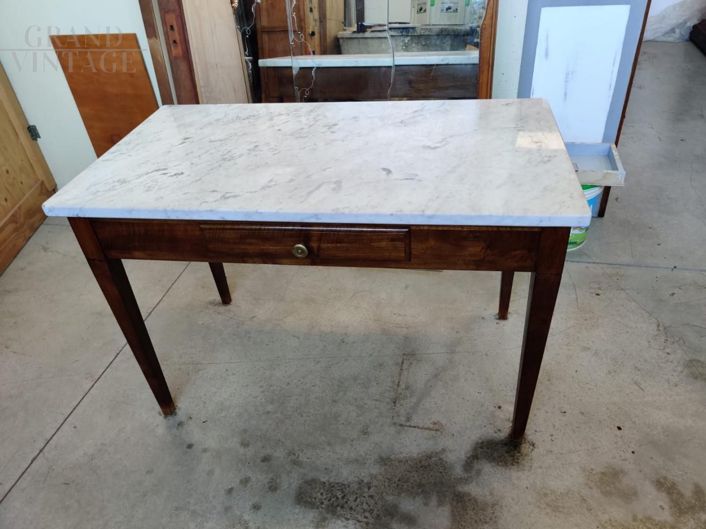 Walnut table with marble top, it has a drawer on the front, excellent condition, the marble has no breakages.