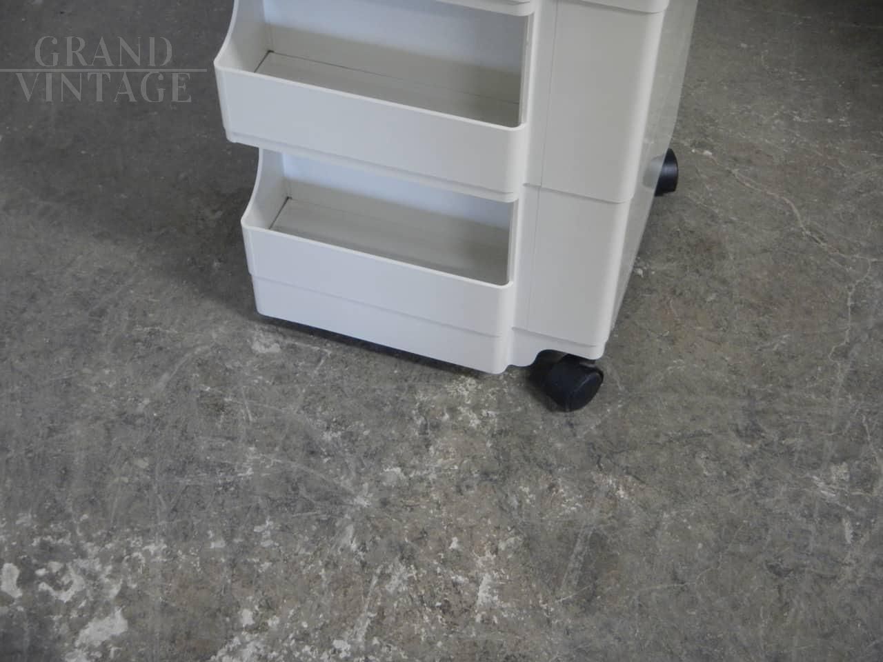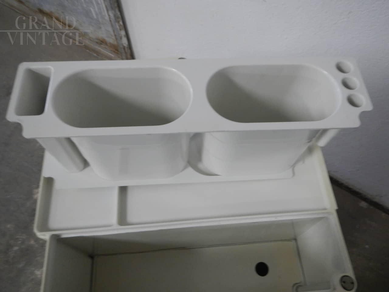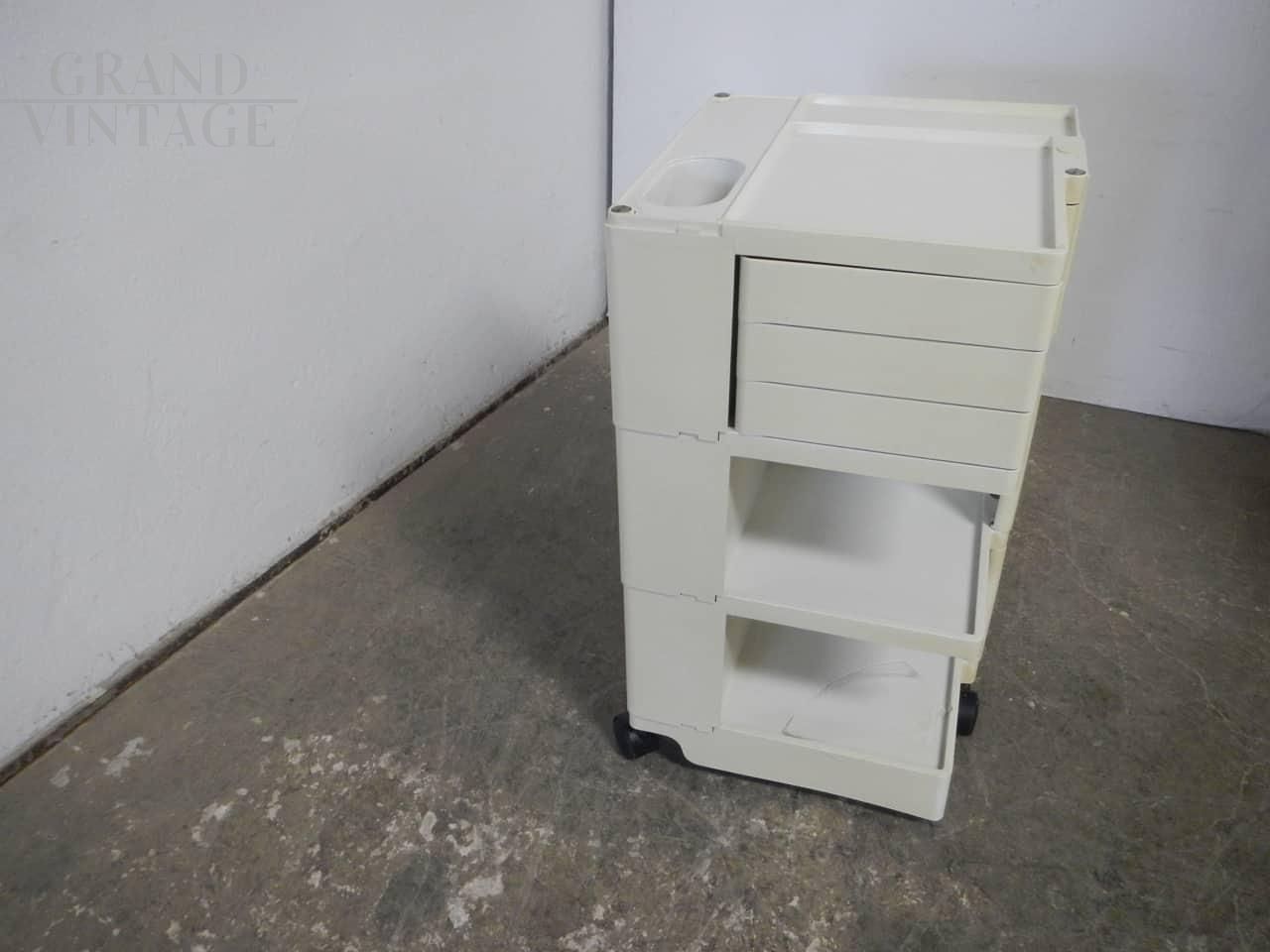 Vintage Boby trolley by Joe Colombo for Bieffeplast in cream white colour, original with brand, complete with 3 drawers and various compartments and with original wheels. In good condition, one top is worn as shown in the photo.