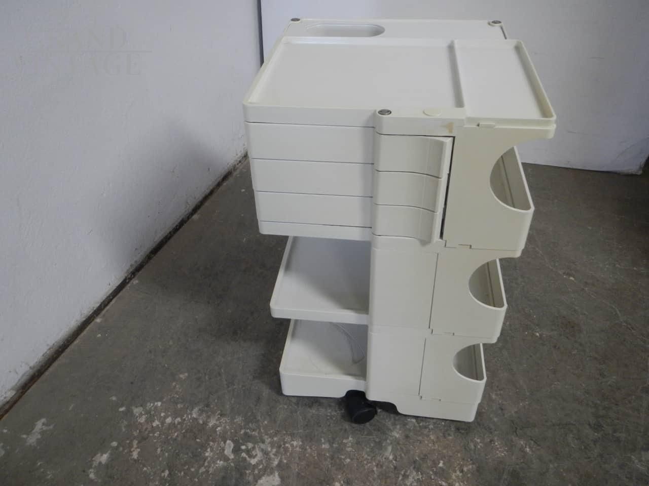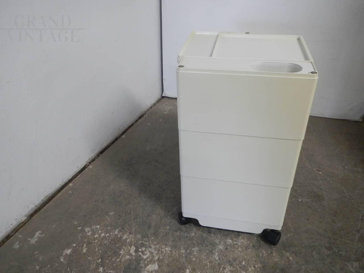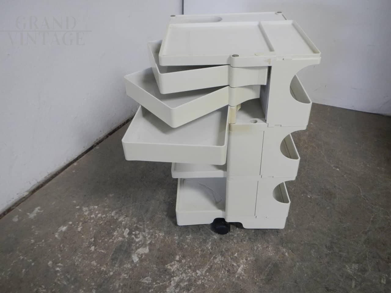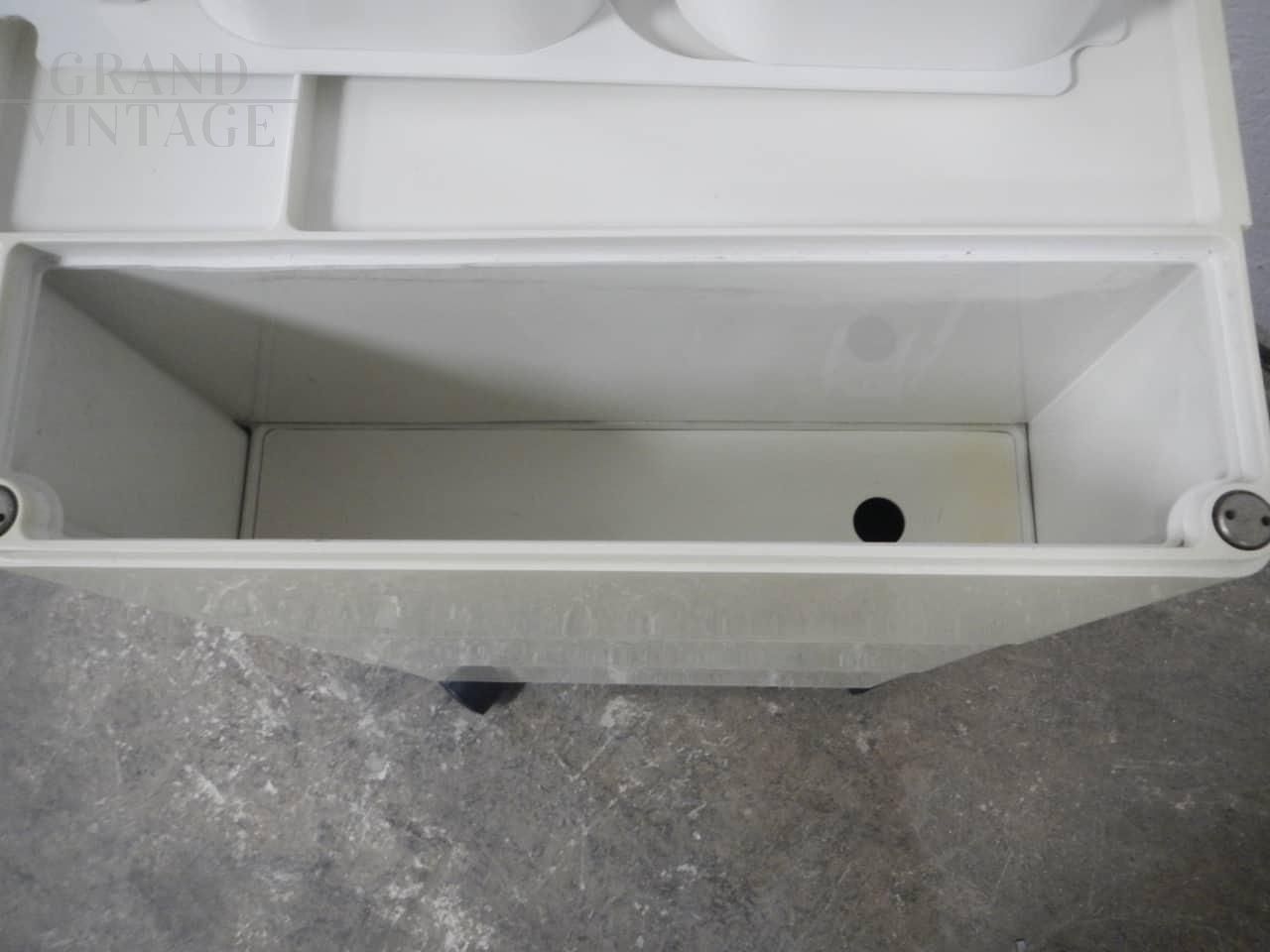Vintage Boby trolley by Joe Colombo for Bieffeplast in cream white colour, original with brand, complete with 3 drawers and various compartments and with original wheels. In good condition, one top is worn as shown in the photo.