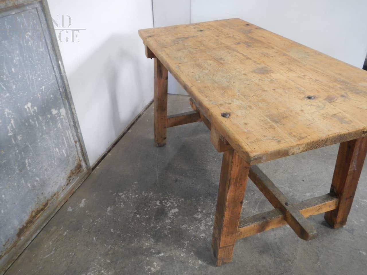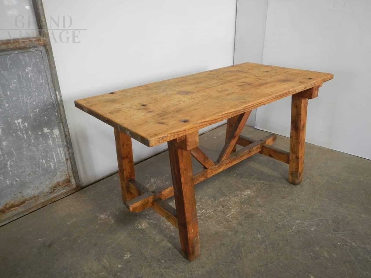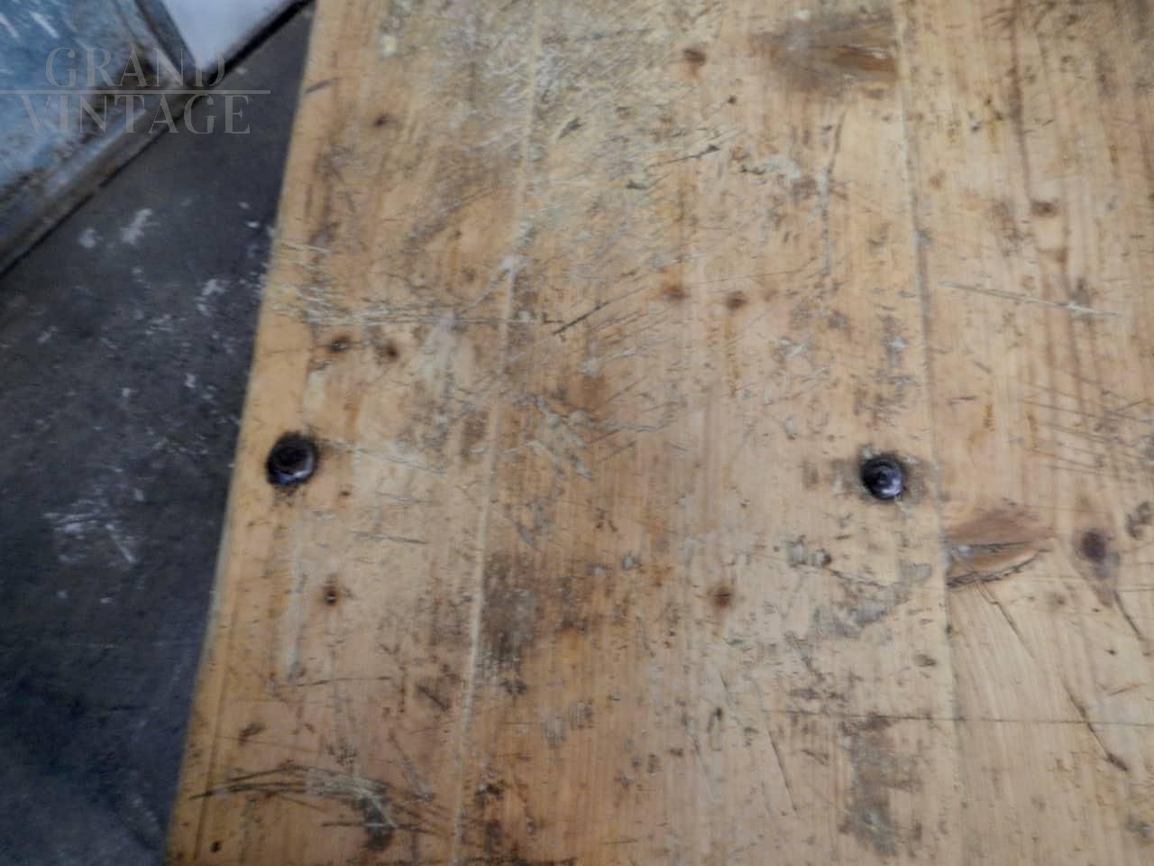 Rustic workbench table in fir wood from the 1940s, cleaned and treated with natural wax. In good condition.