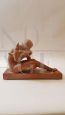 Claude Mirval, fine XIX sec.: scultura in terracotta raffigurante donna seduta che abbraccia il suo bambino.
