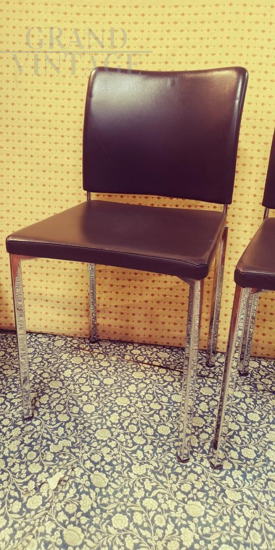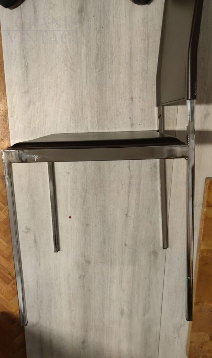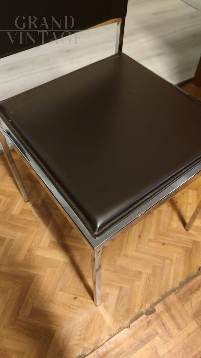 4 sedie Molteni, epoca anni '90, con struttura in metallo cromato e pelle color antracite.