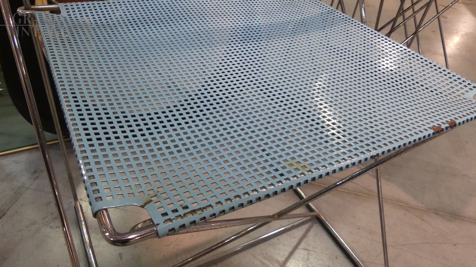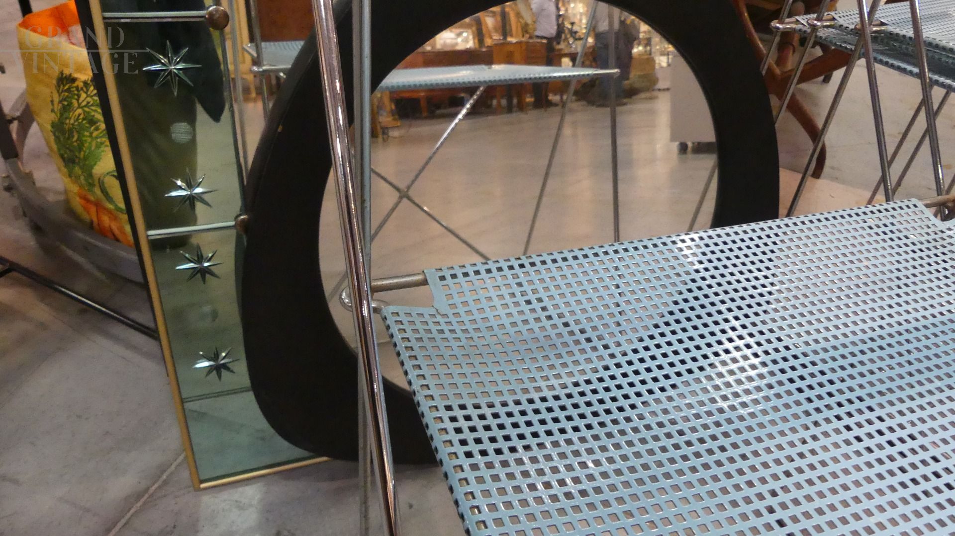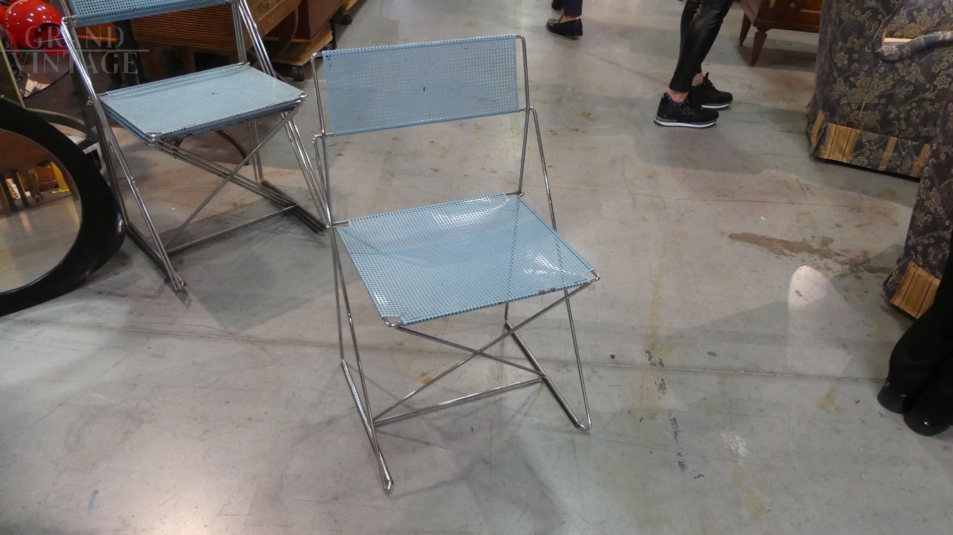 4 sedie Magri anni '70 impilabili. Prodotte in metallo laccato blu e ferro traforato.