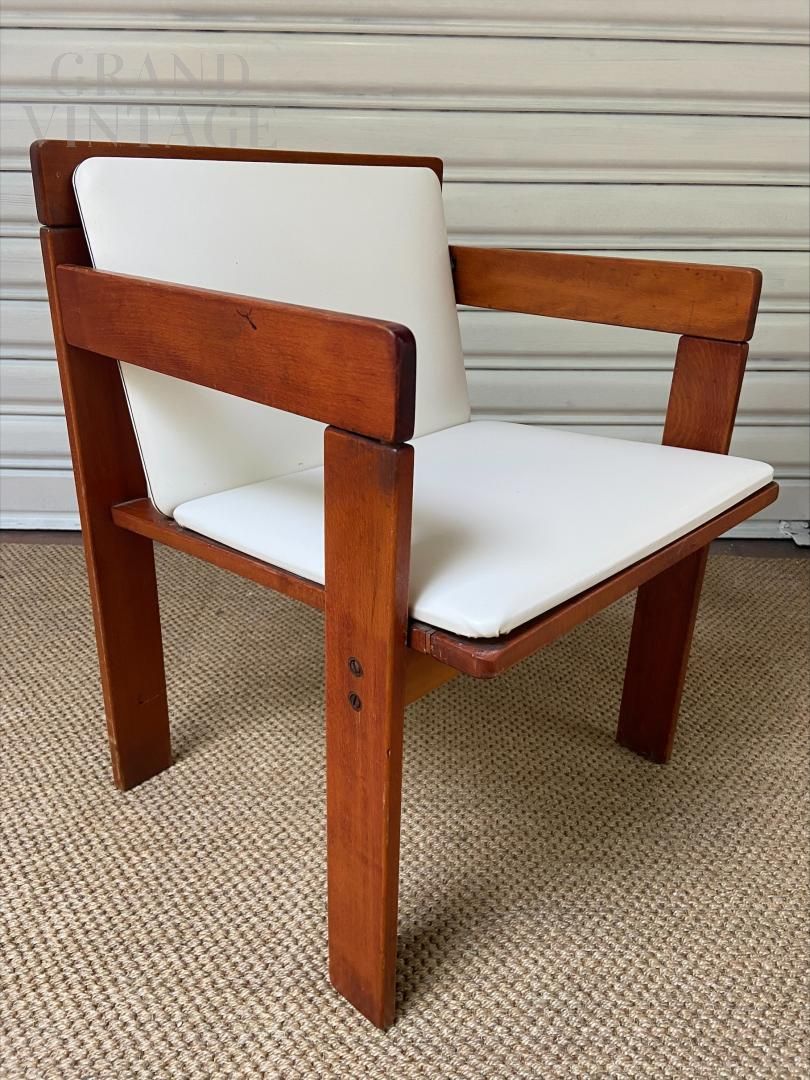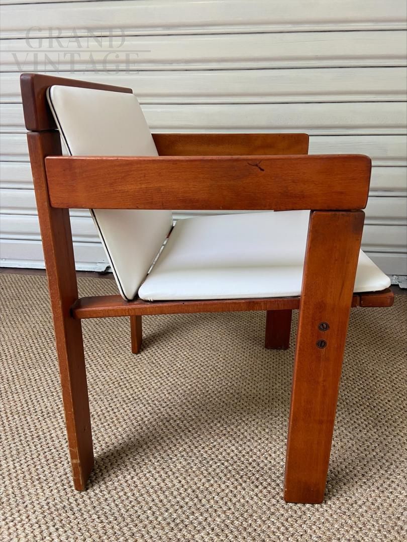 4 sedie poltrone Reguitti in legno e similpelle bianca, 1972
