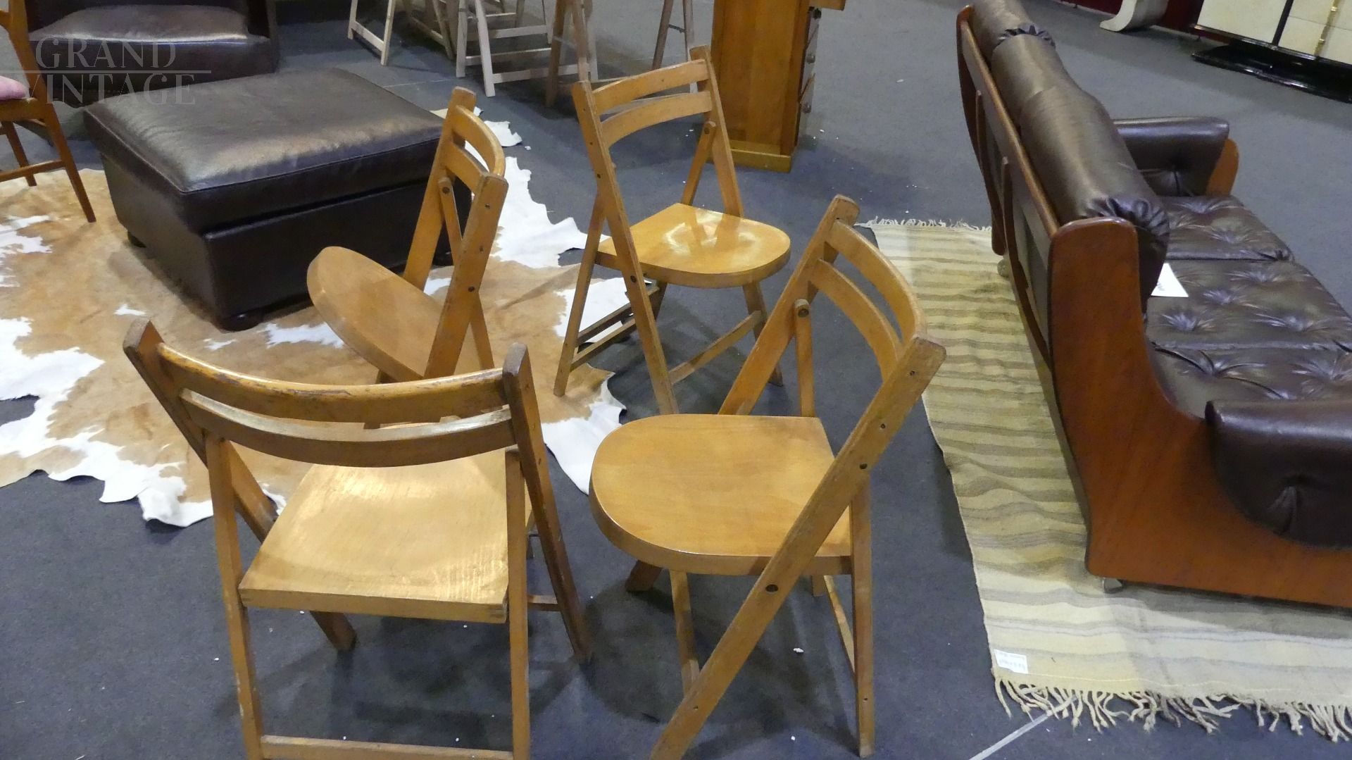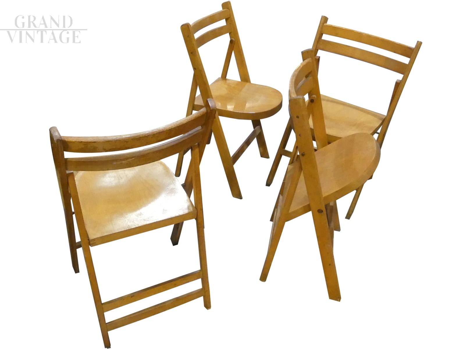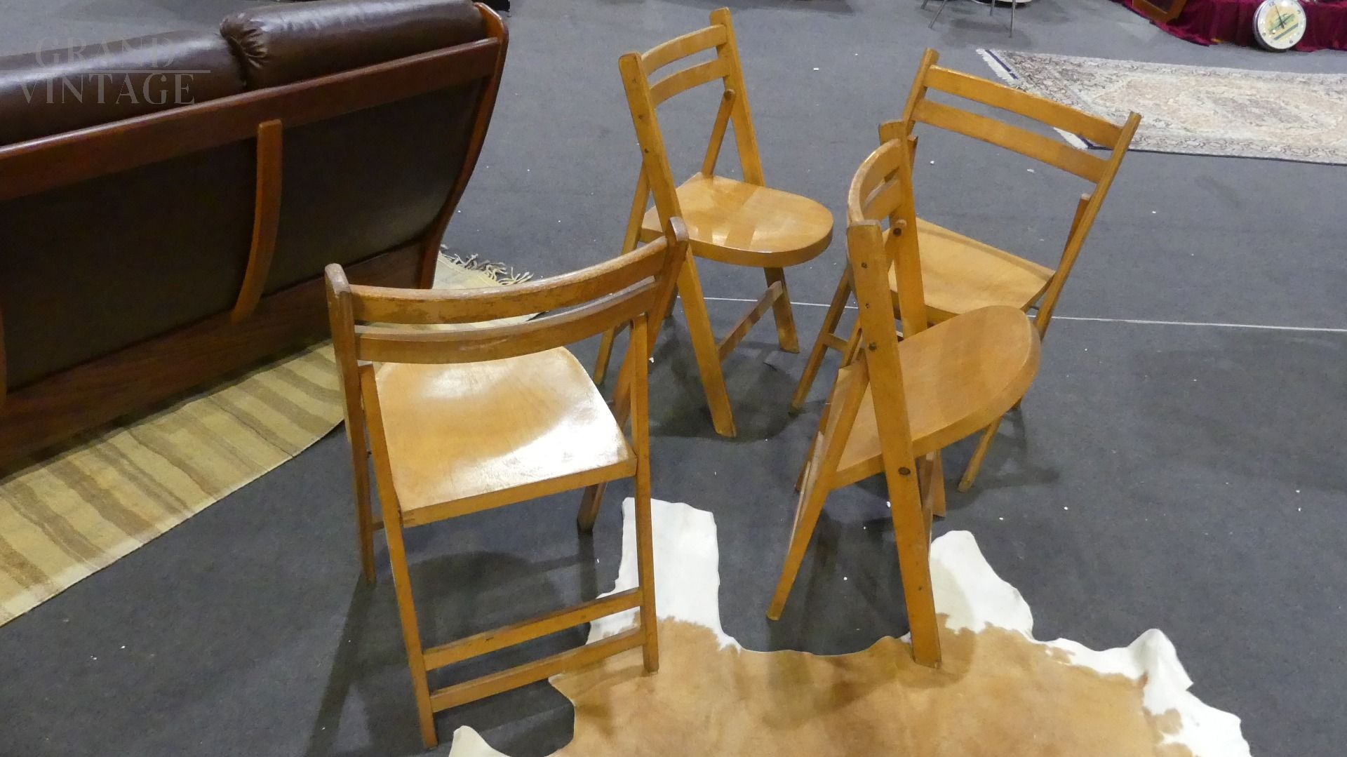 4 Sedie pieghevoli in legno di faggio degli anni '60 provenienti dal Belgio.