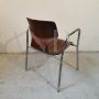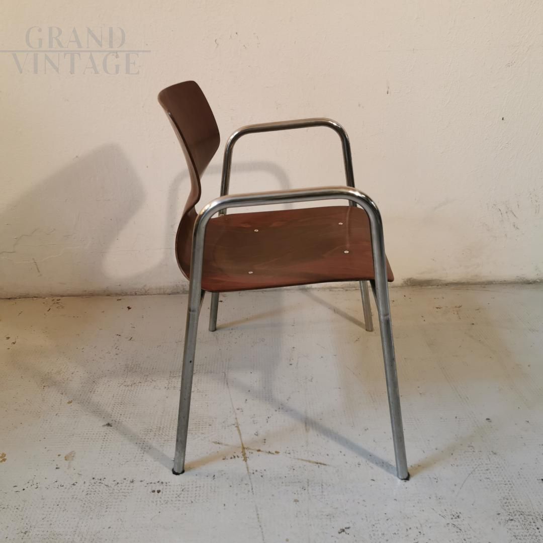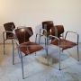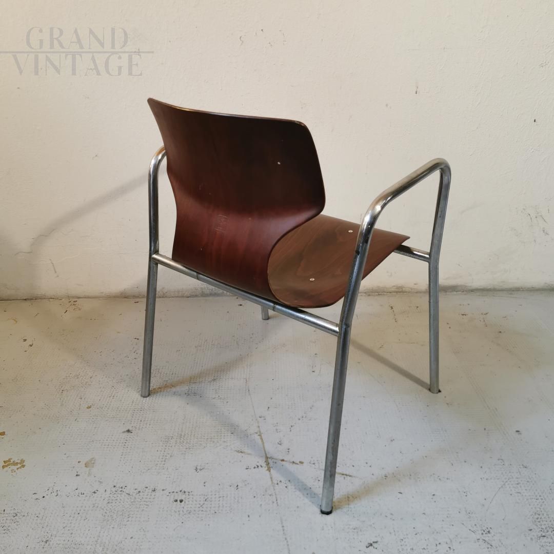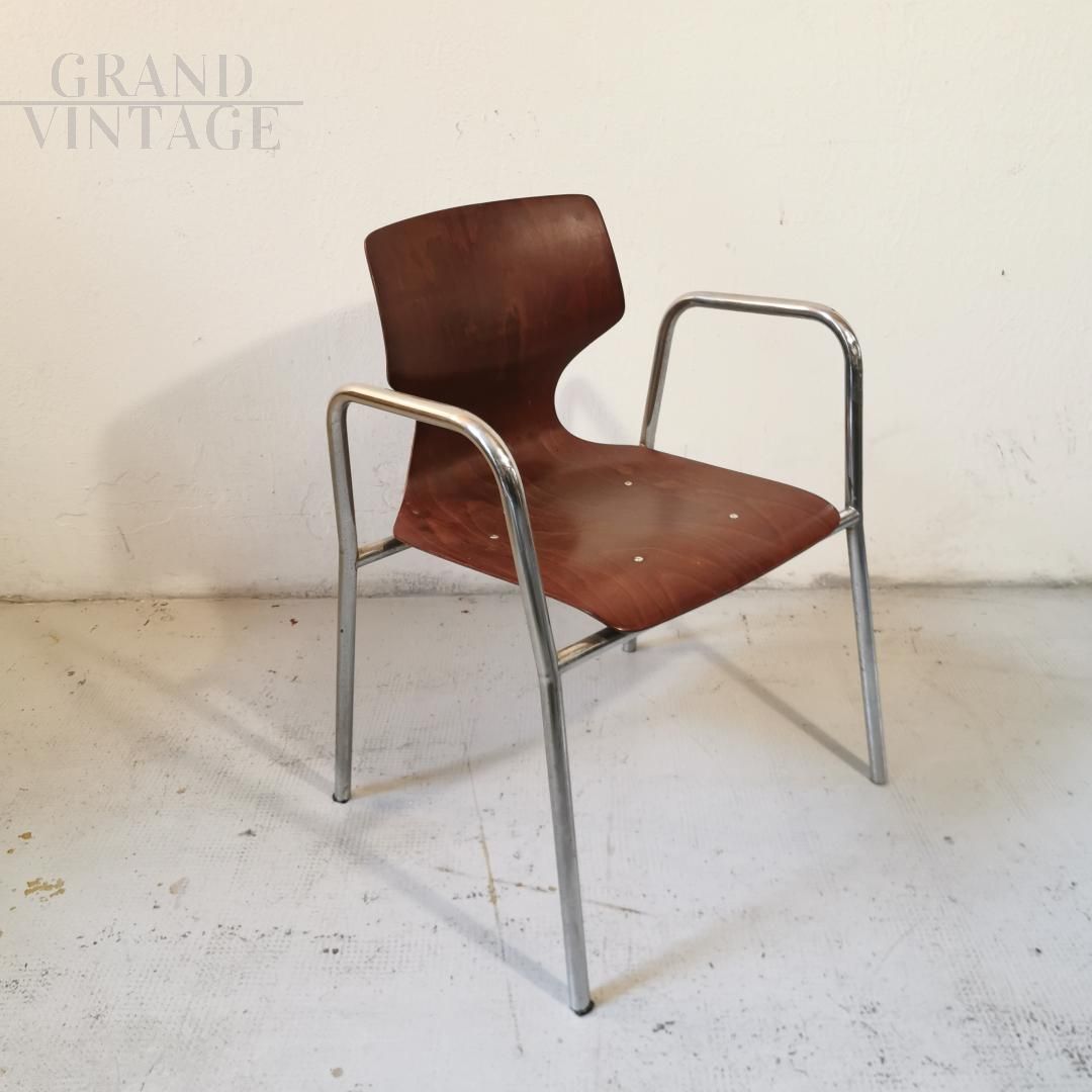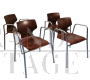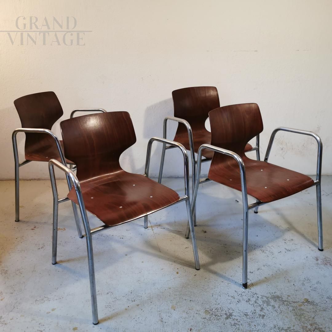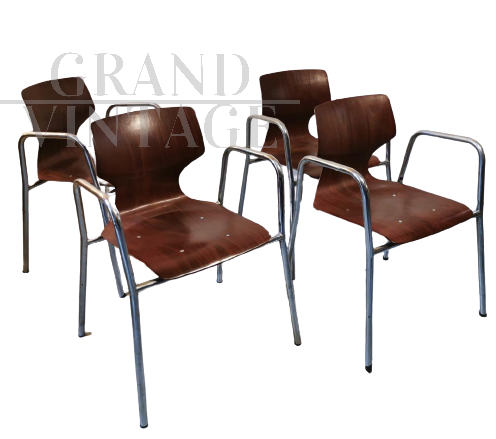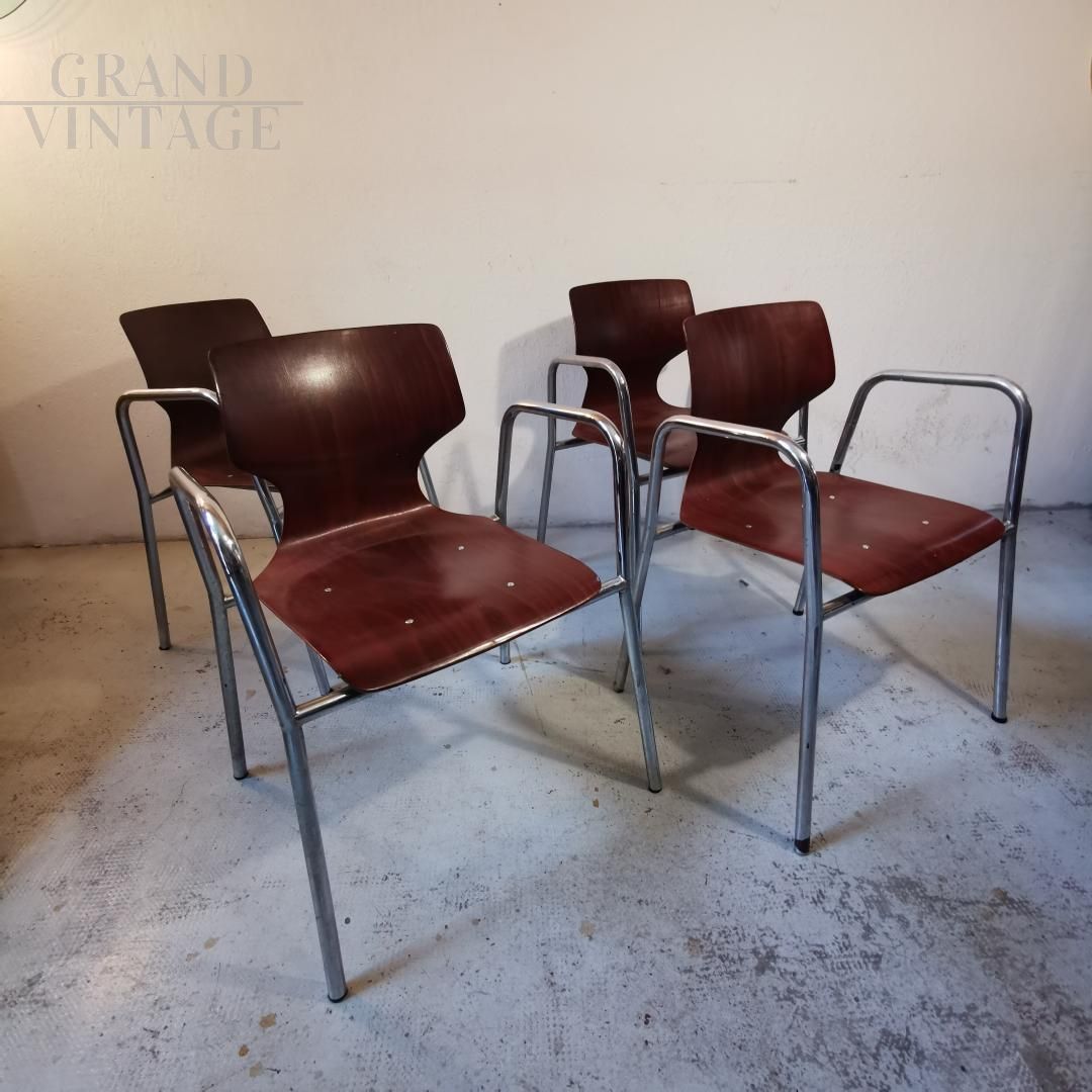 4 Sedie Pagholz di Flötotto con braccioli, anni '60, con struttura in acciaio e seduta in legno.