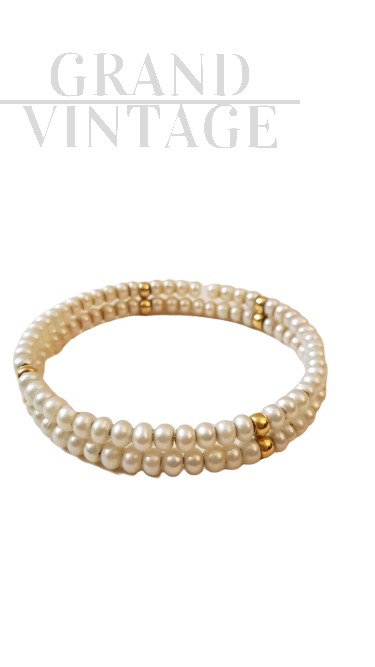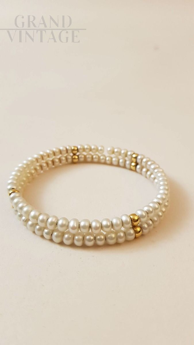 Grazioso bracciale con montatura in oro 18 k e 2 fili di perle di acqua dolce bianche adattabile a qualsiasi misura peso lordo 10.8 g .