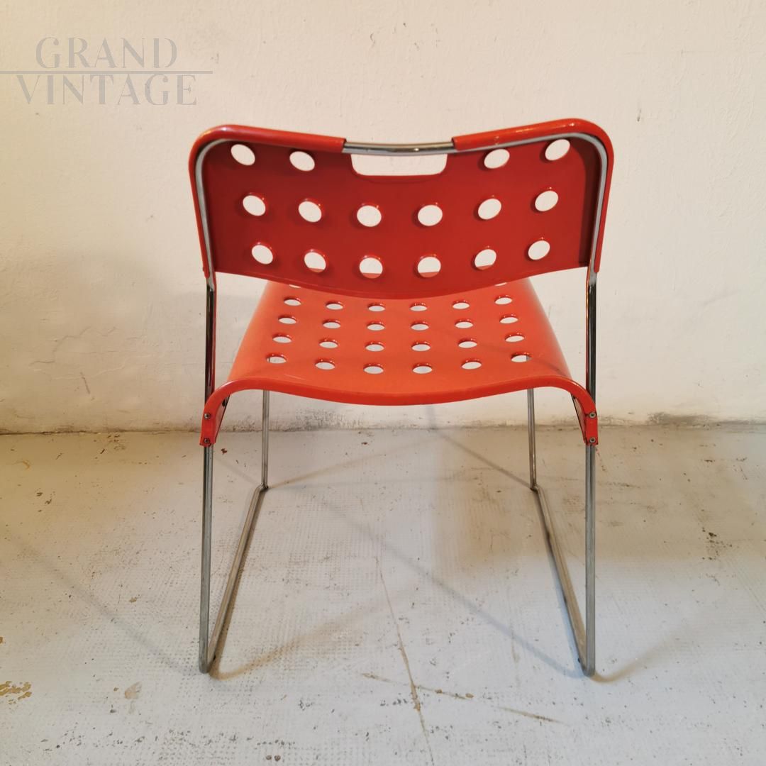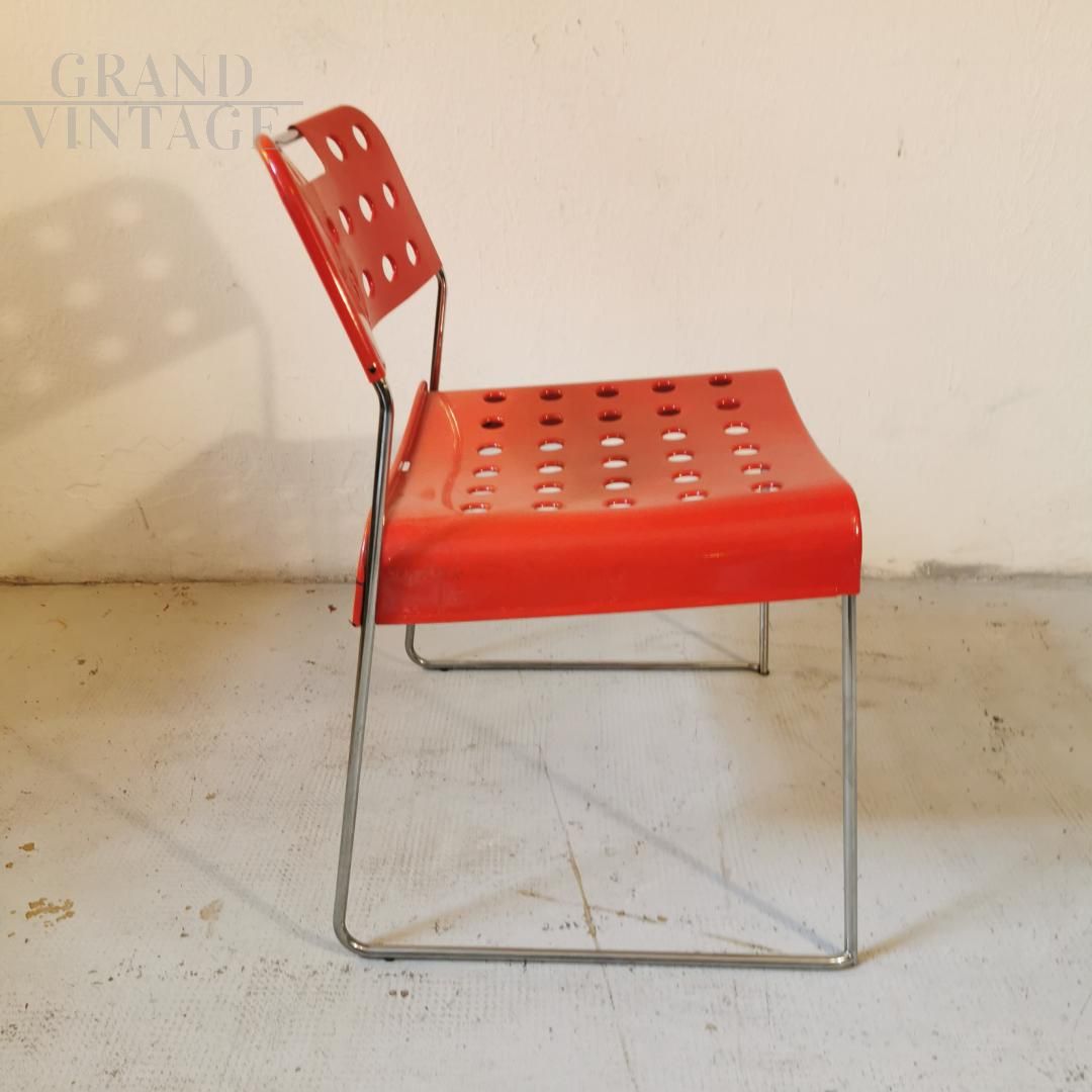8 Sedie Omkstak rosse di Rodney Kinsman per Bieffeplast, originali, con struttura in acciaio, in ottime condizioni.
