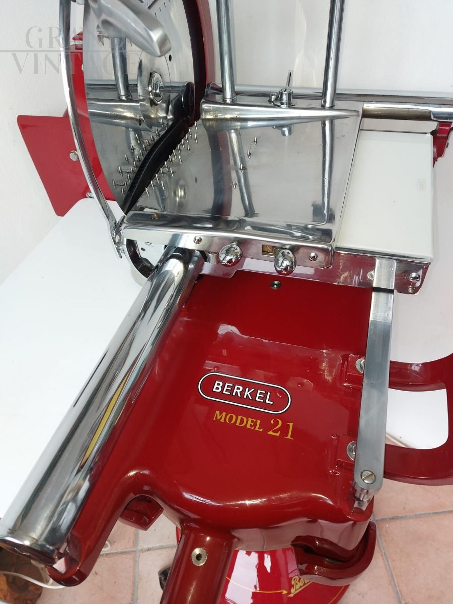 Affettatrice Berkel vintage anni '50 modello 21, completa di piedistallo, un vero pezzo da collezione in ottimo stato, perfettamente restaurata, come nuova.