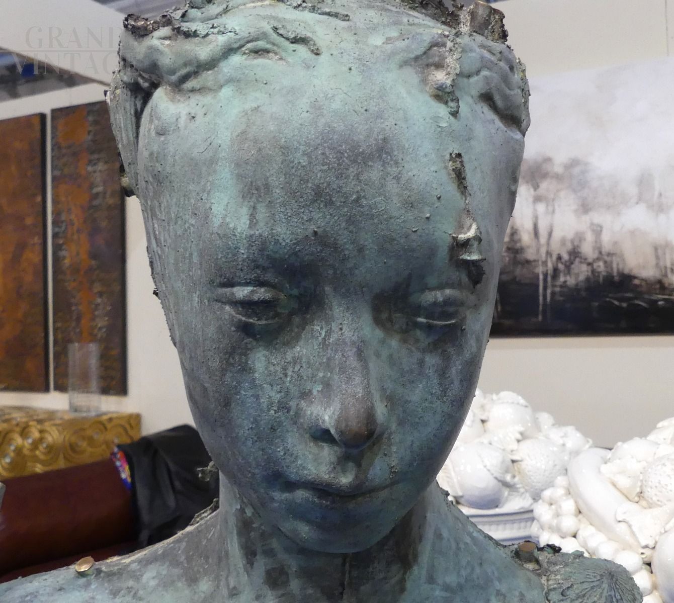 Busto femminile in bronzo di Alessio Deli, con una struttura aerea particolare che dona all'opera d'arte una parvenza leggera e onirica.