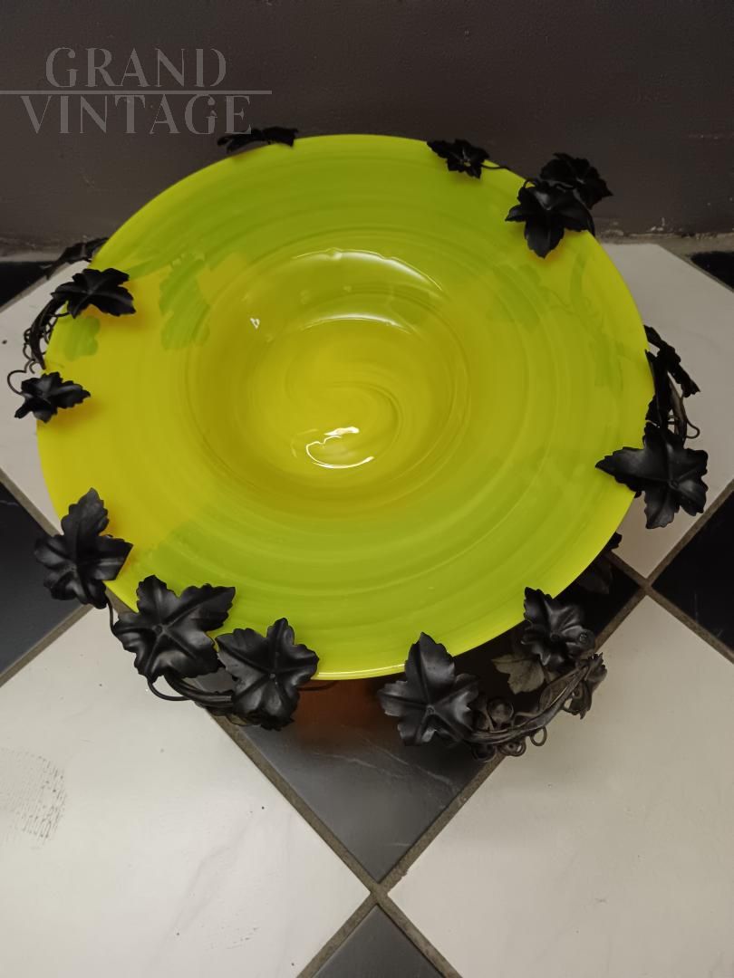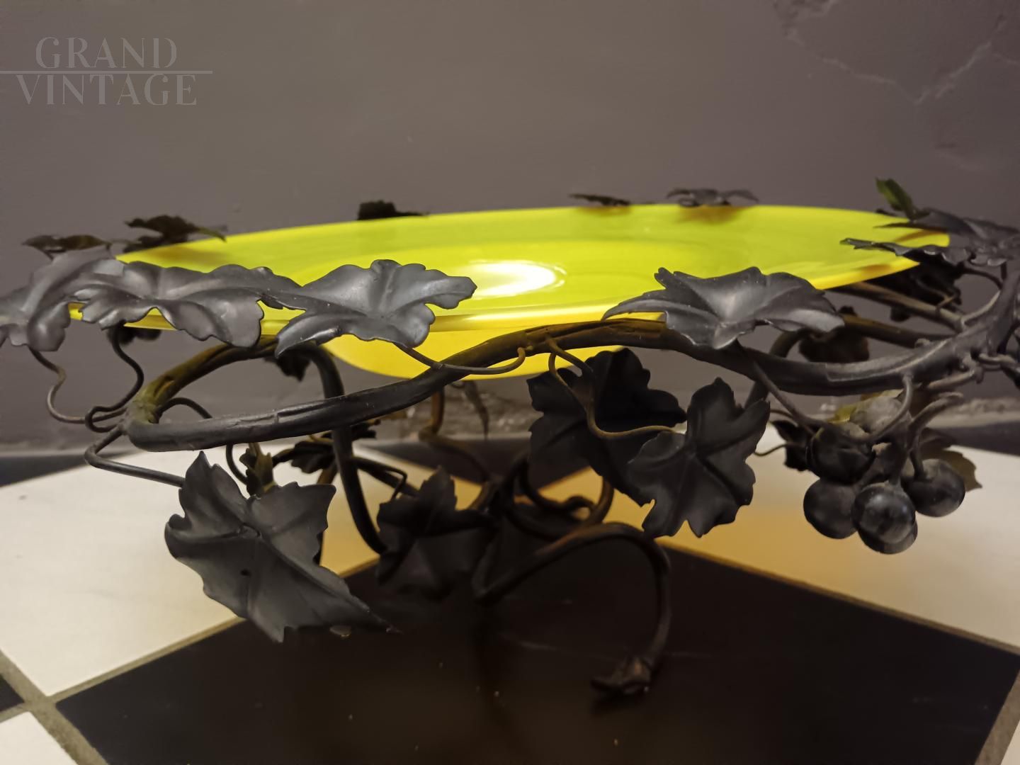 Alzatina centrotavola in ferro battuto e vetro di Murano giallo