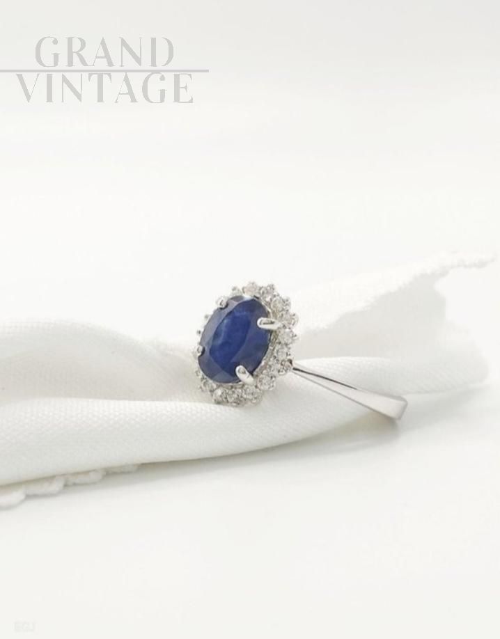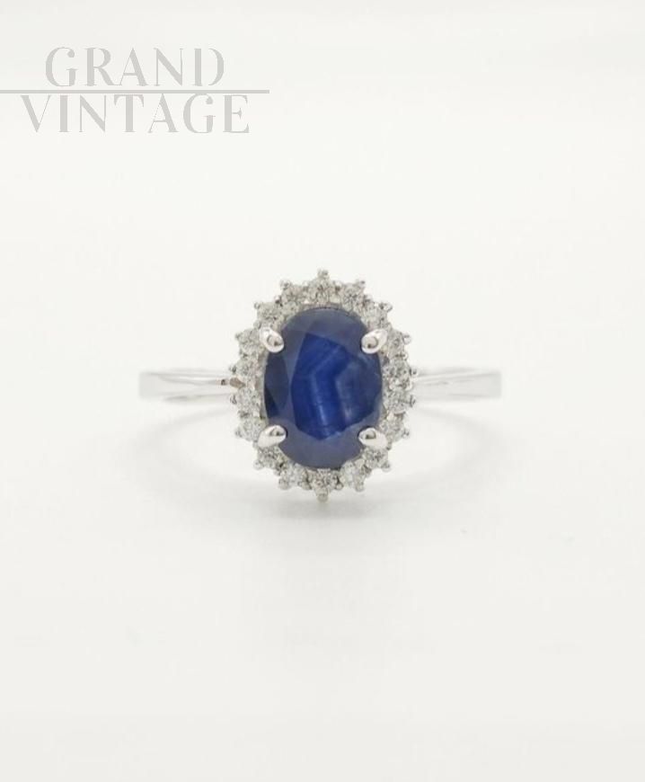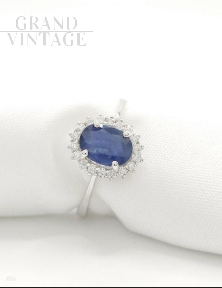 Anello con zaffiro ovale e diamanti