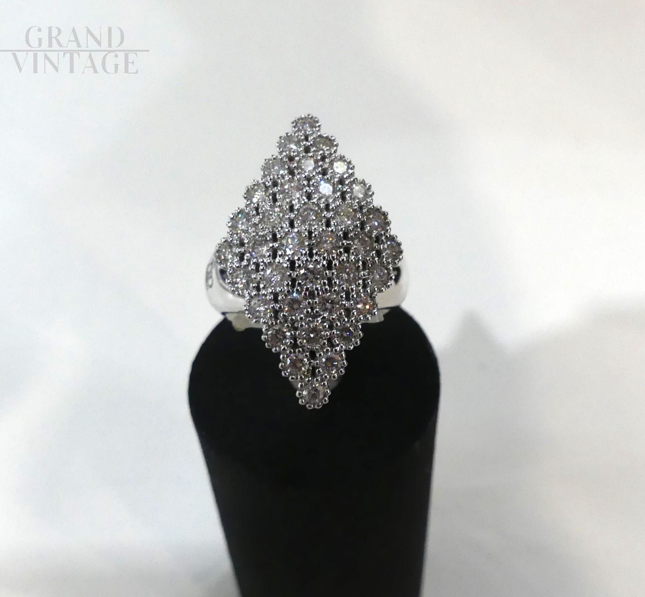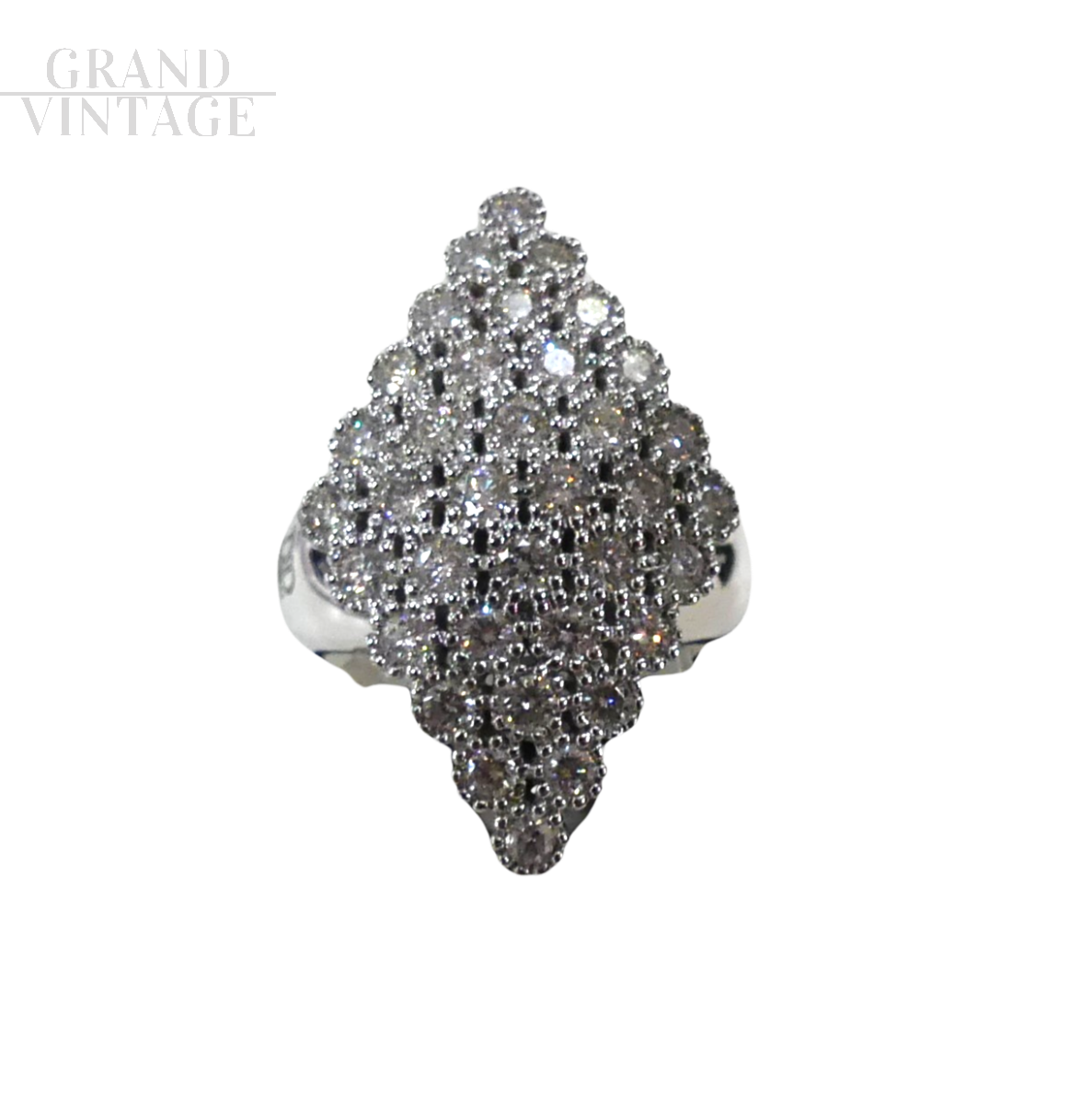 Anello in oro bianco 18 kt con diamanti 1.20 carati disposti a rombo, nuova produzione D.D Gioielli.