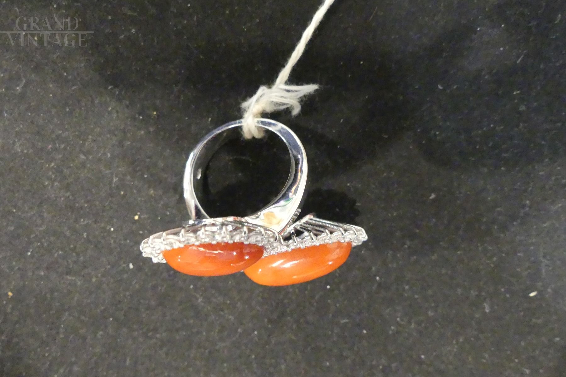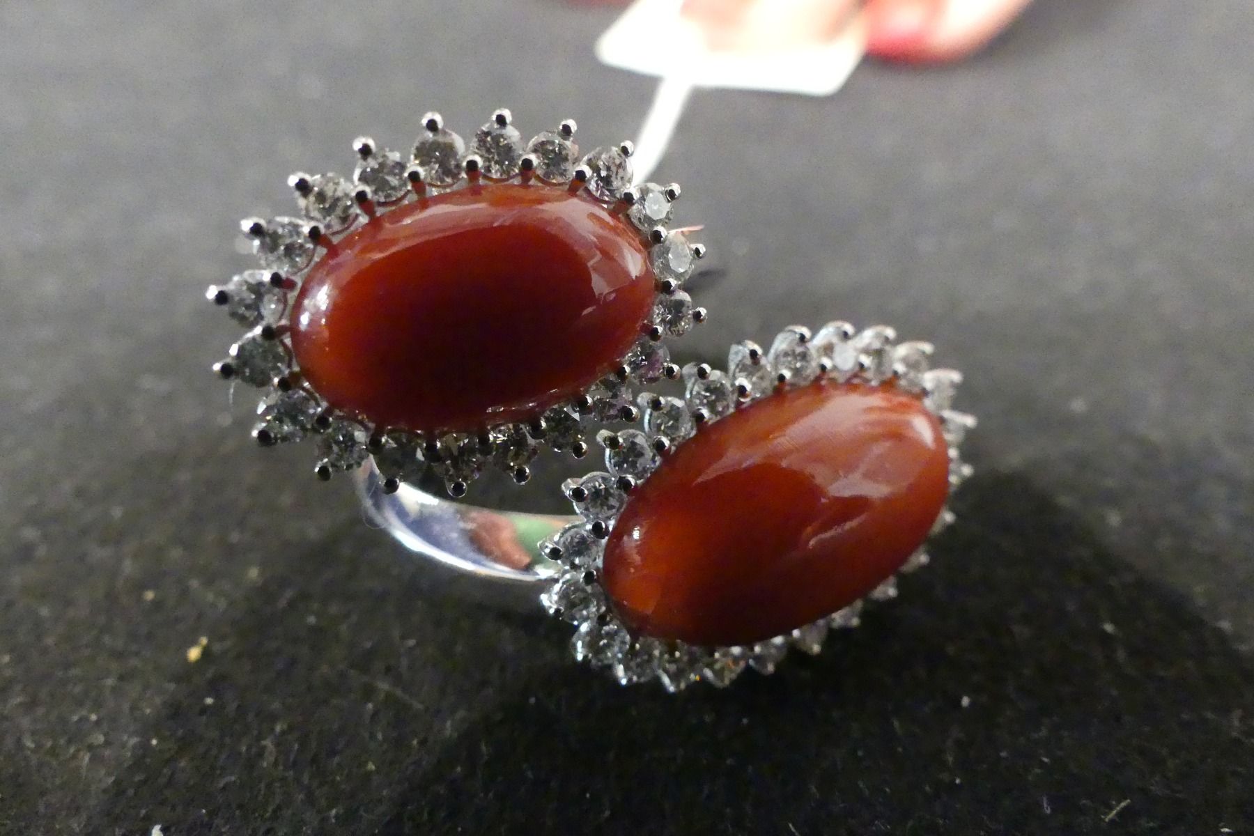 Anello in oro bianco con diamanti e doppio corallo Sardegna