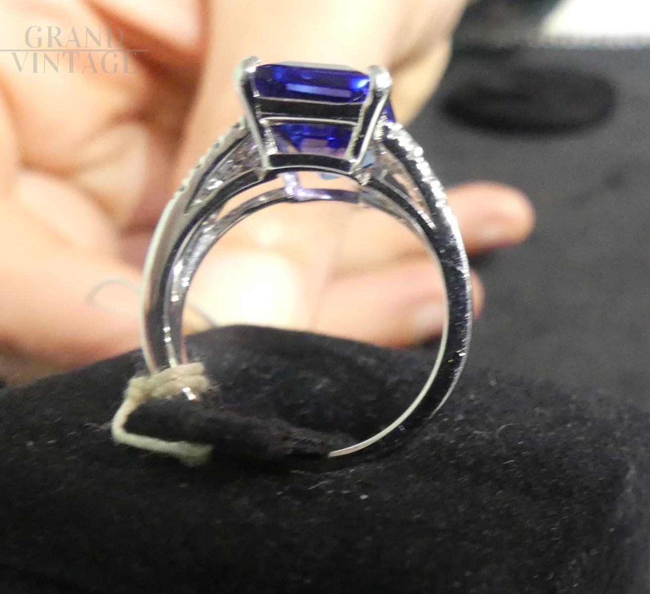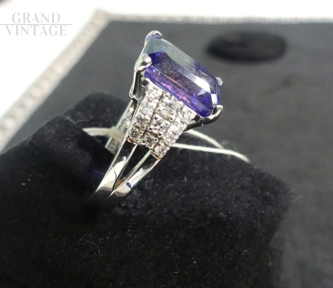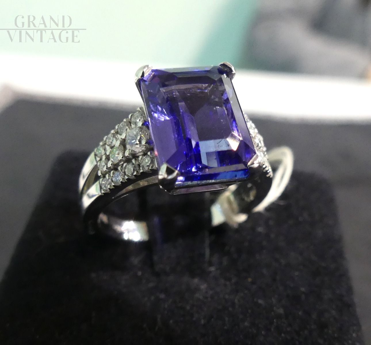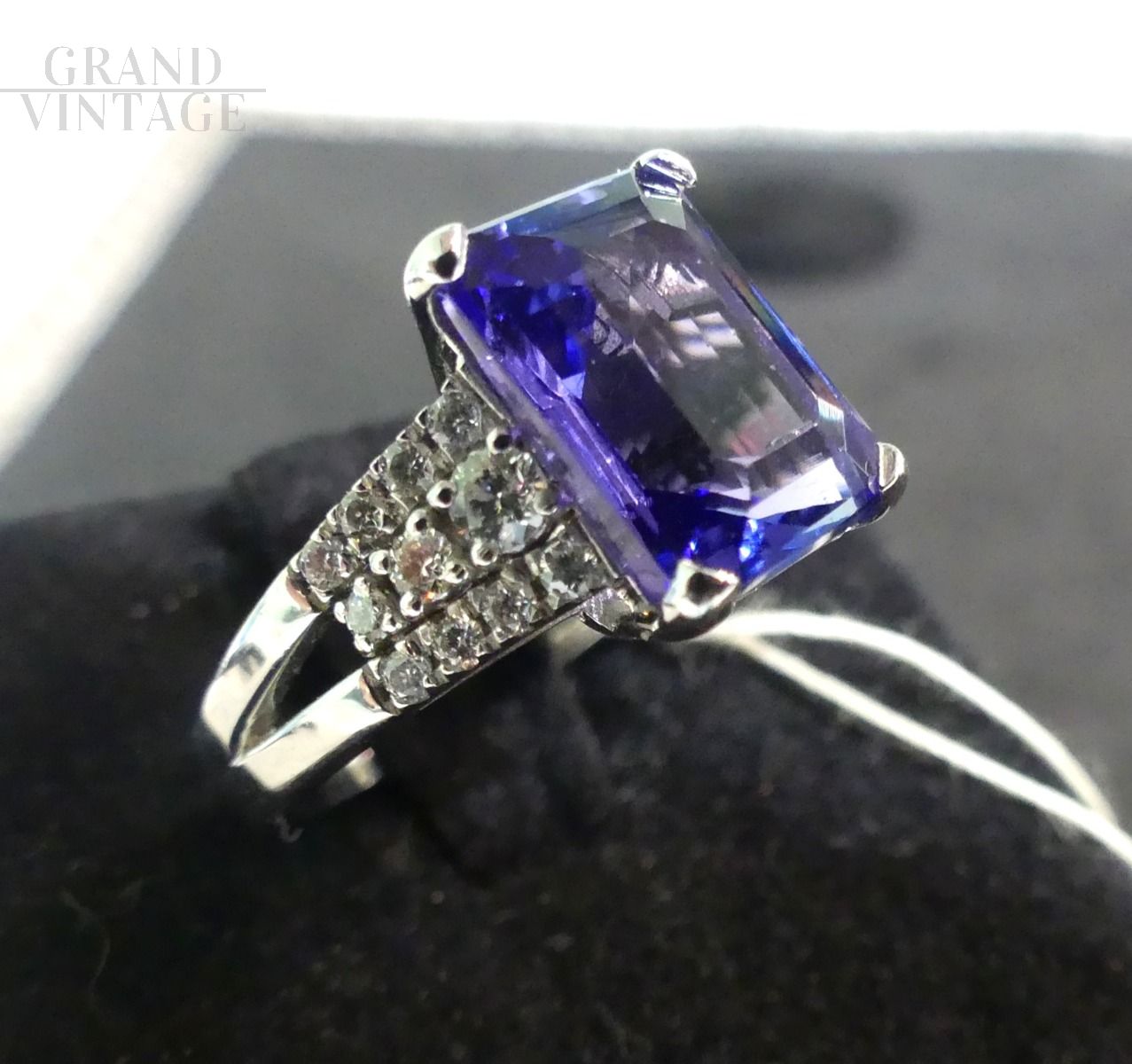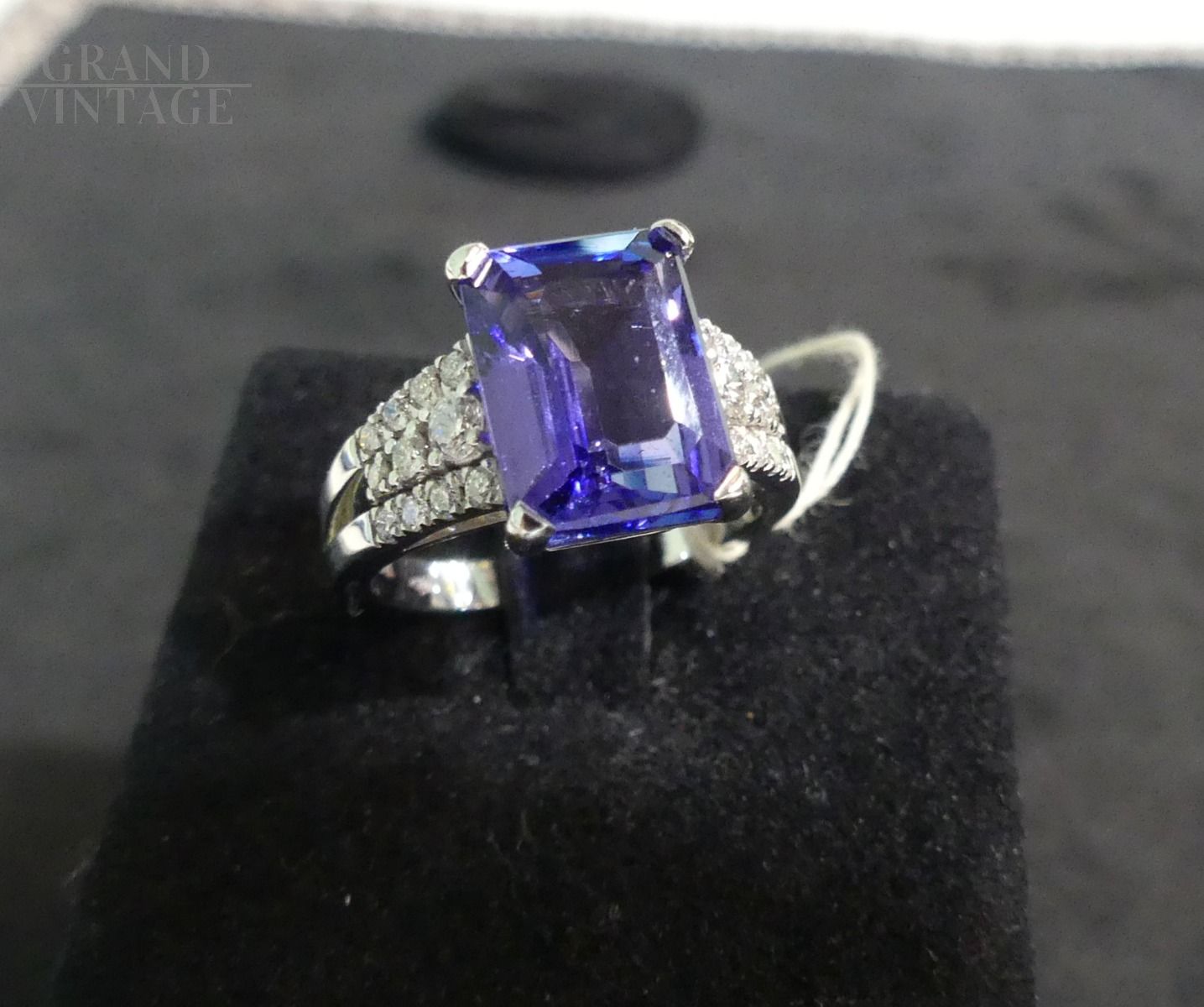Anello in oro bianco 18 kt con grande tanzanite e diamanti taglio brillante.
