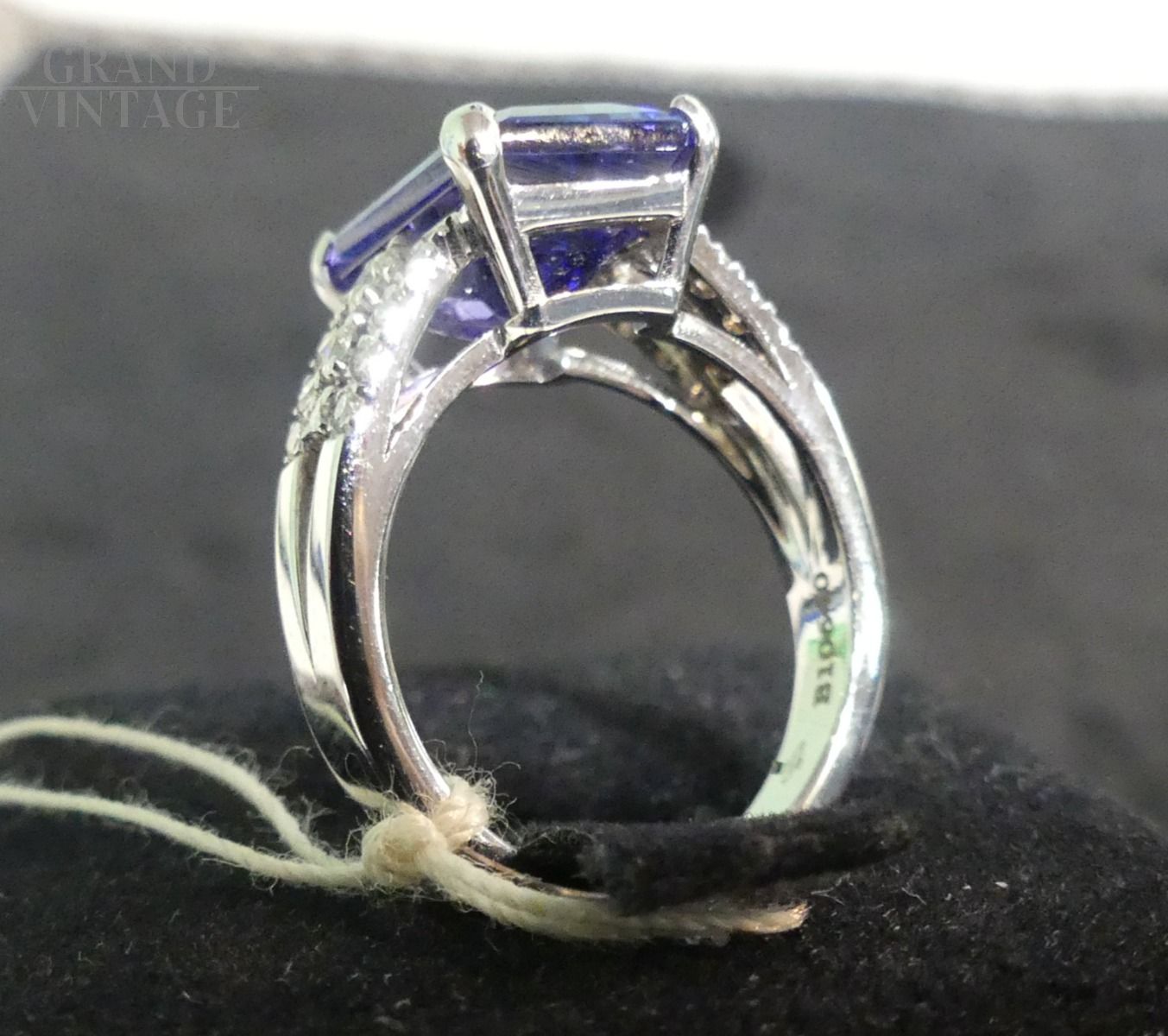 Anello in oro bianco con tanzanite e diamanti taglio brillante