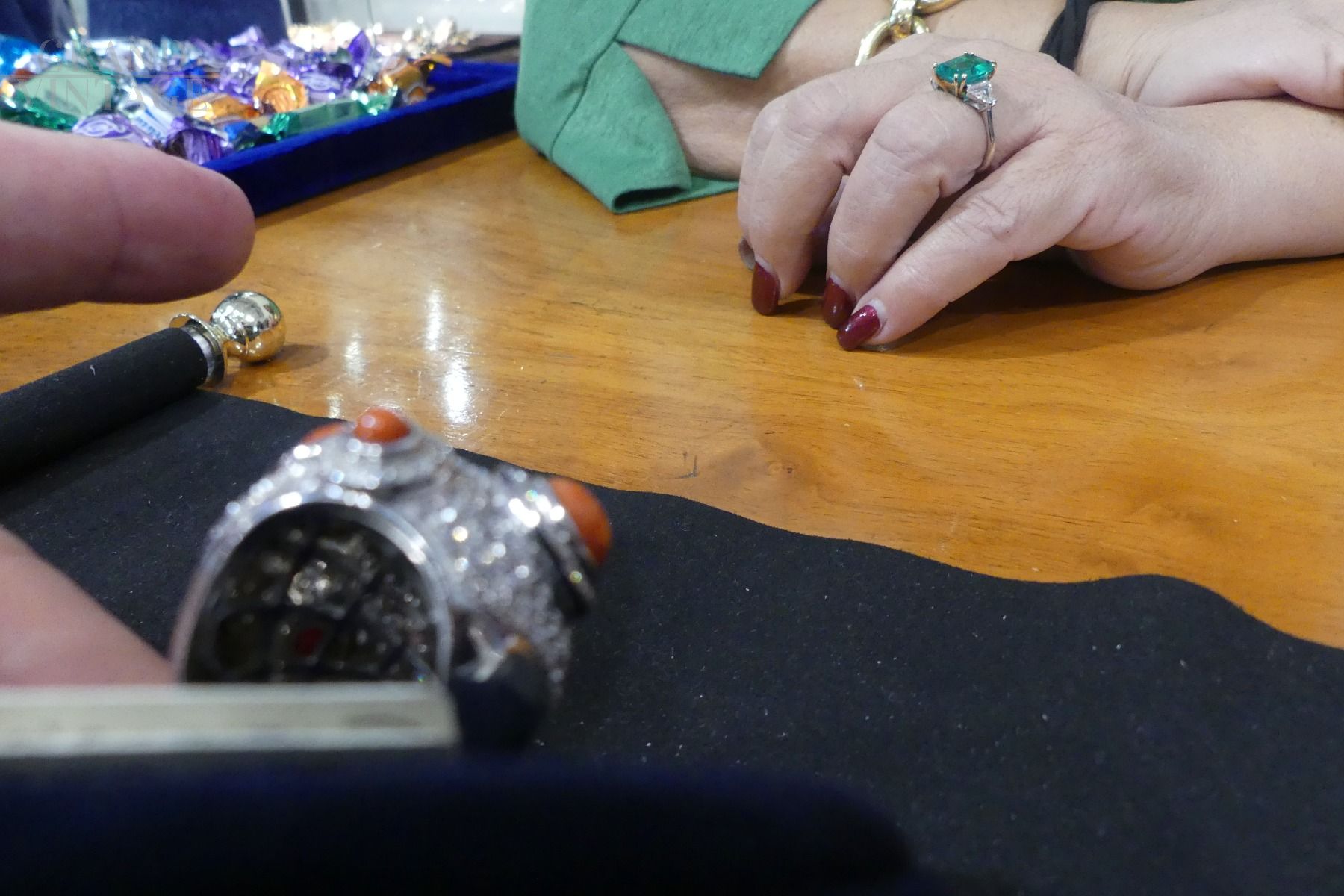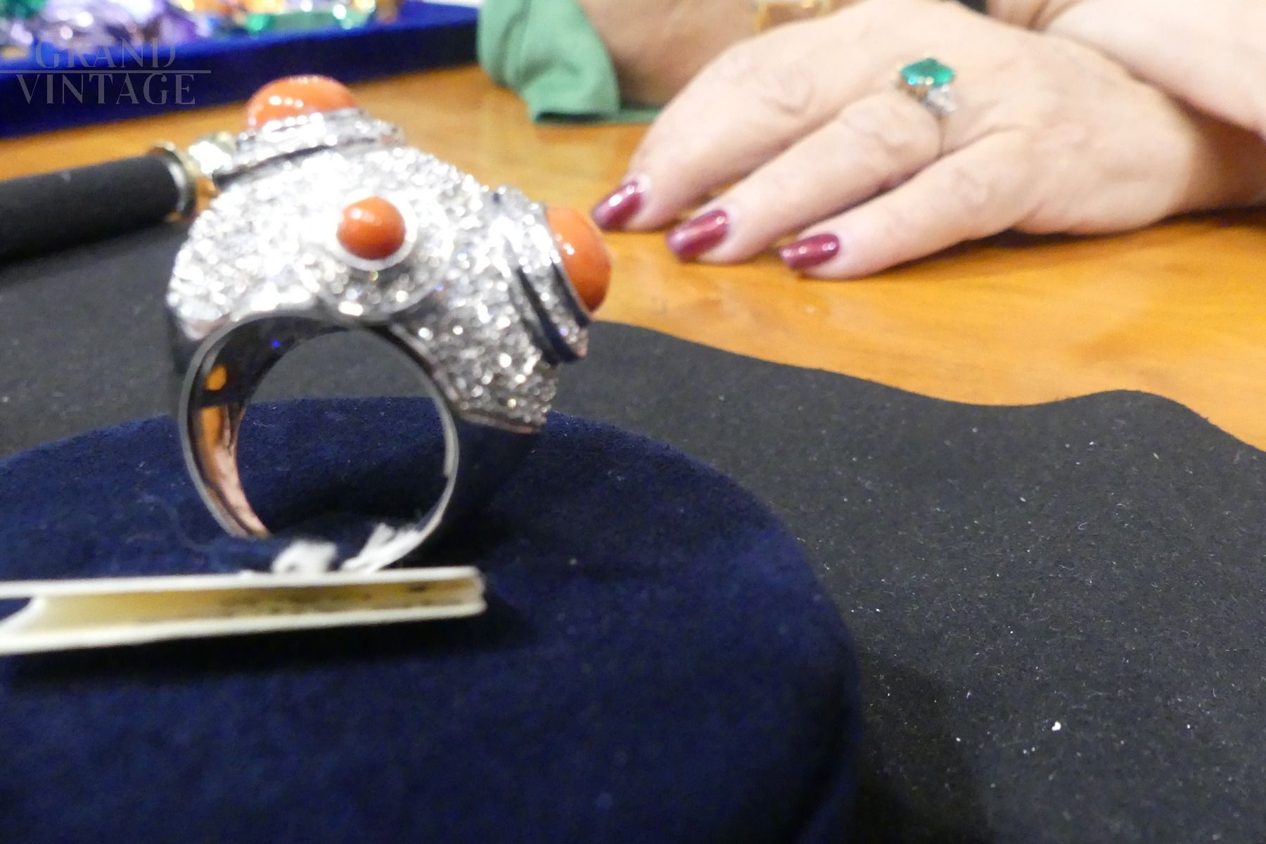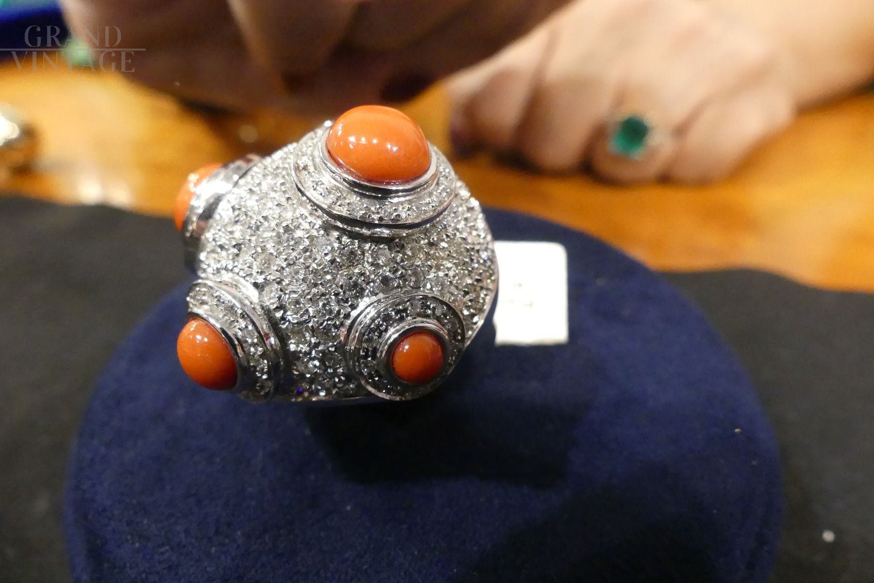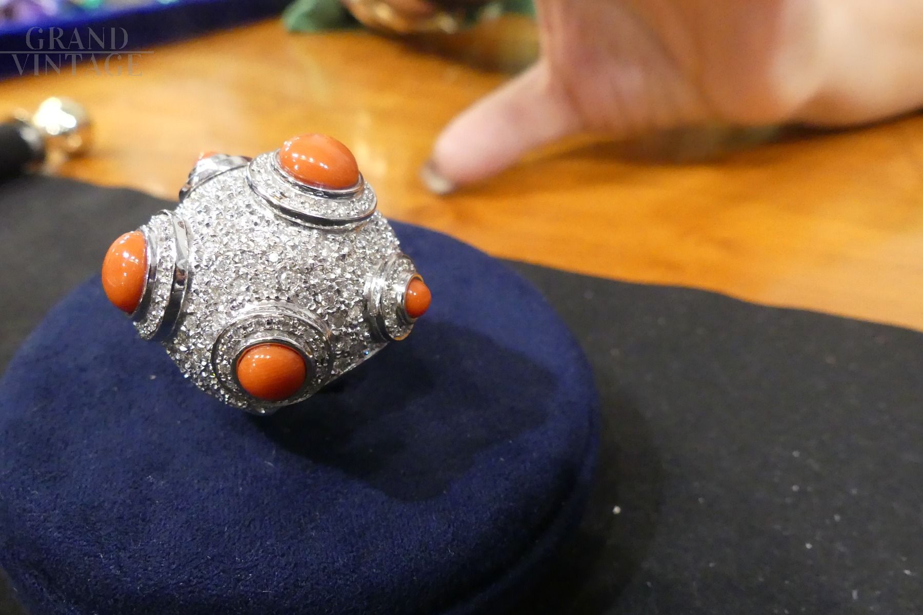 Anello in oro bianco modello Mina con coralli e diamanti