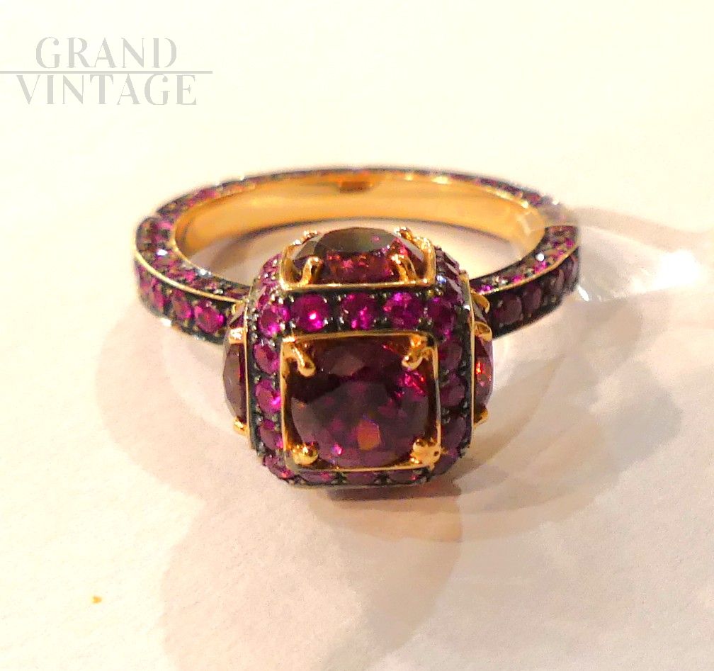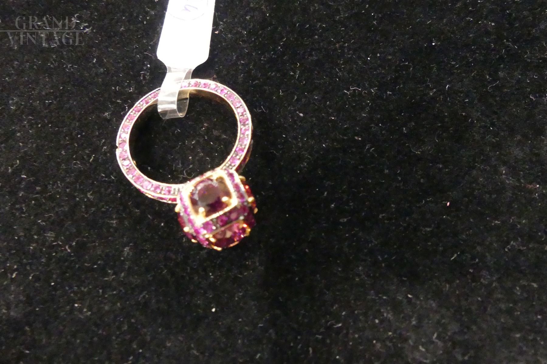 Anello in oro rosa 18 kt con zaffiri rosa di diverse dimensioni, pari a 2.50 ct. L'anello è marchiato 581to.