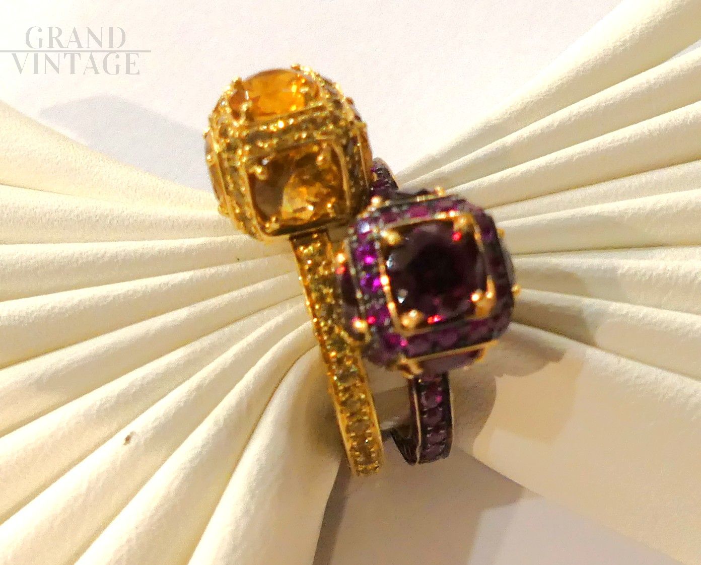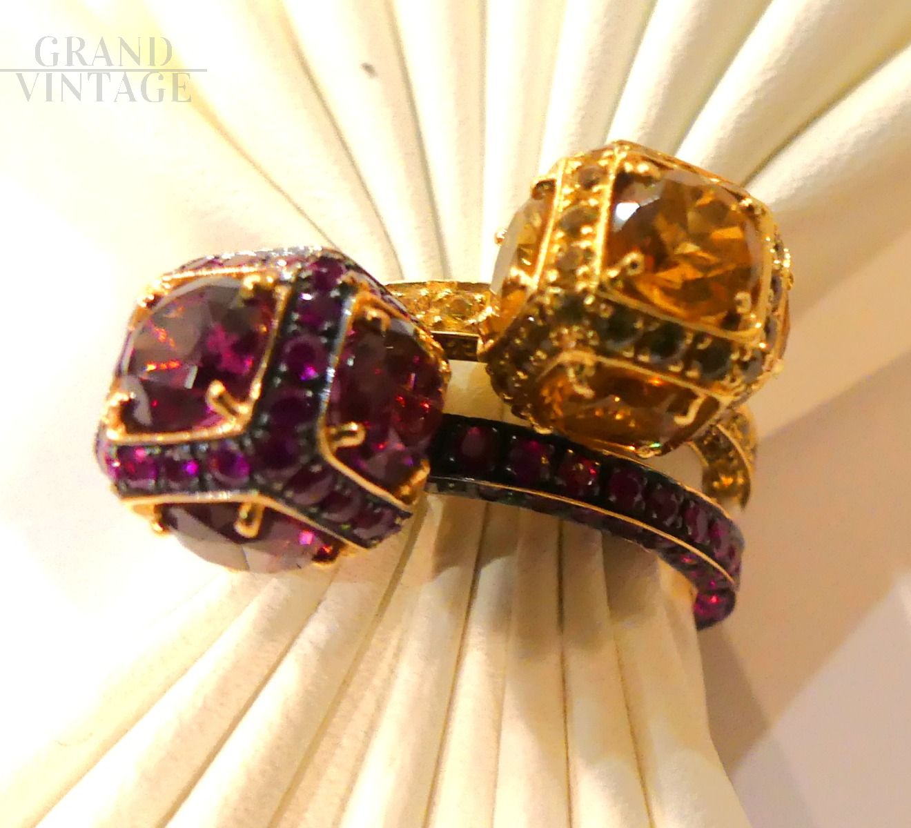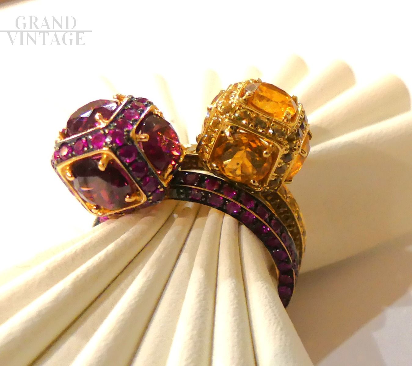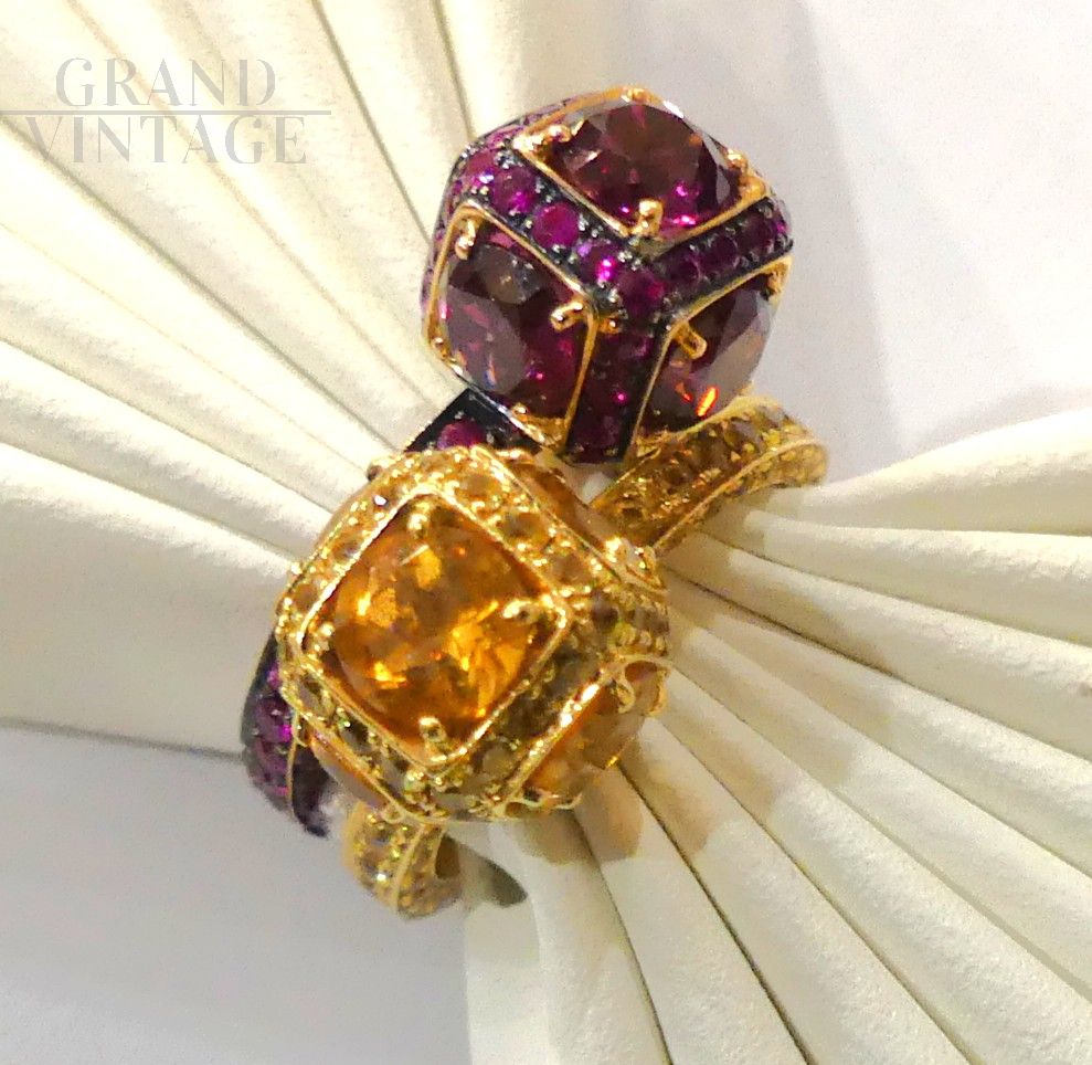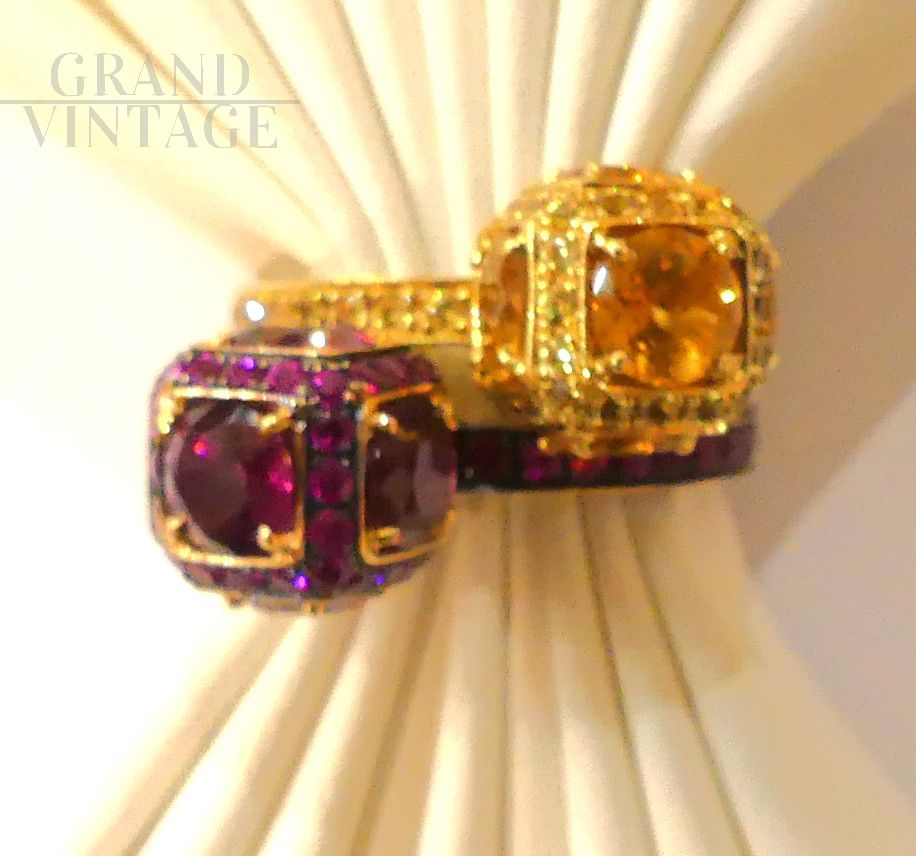 Si consiglia l'acquisto combinato con un anello uguale ma con zaffiri arancio, per creare una coppia perfetta, come da foto.