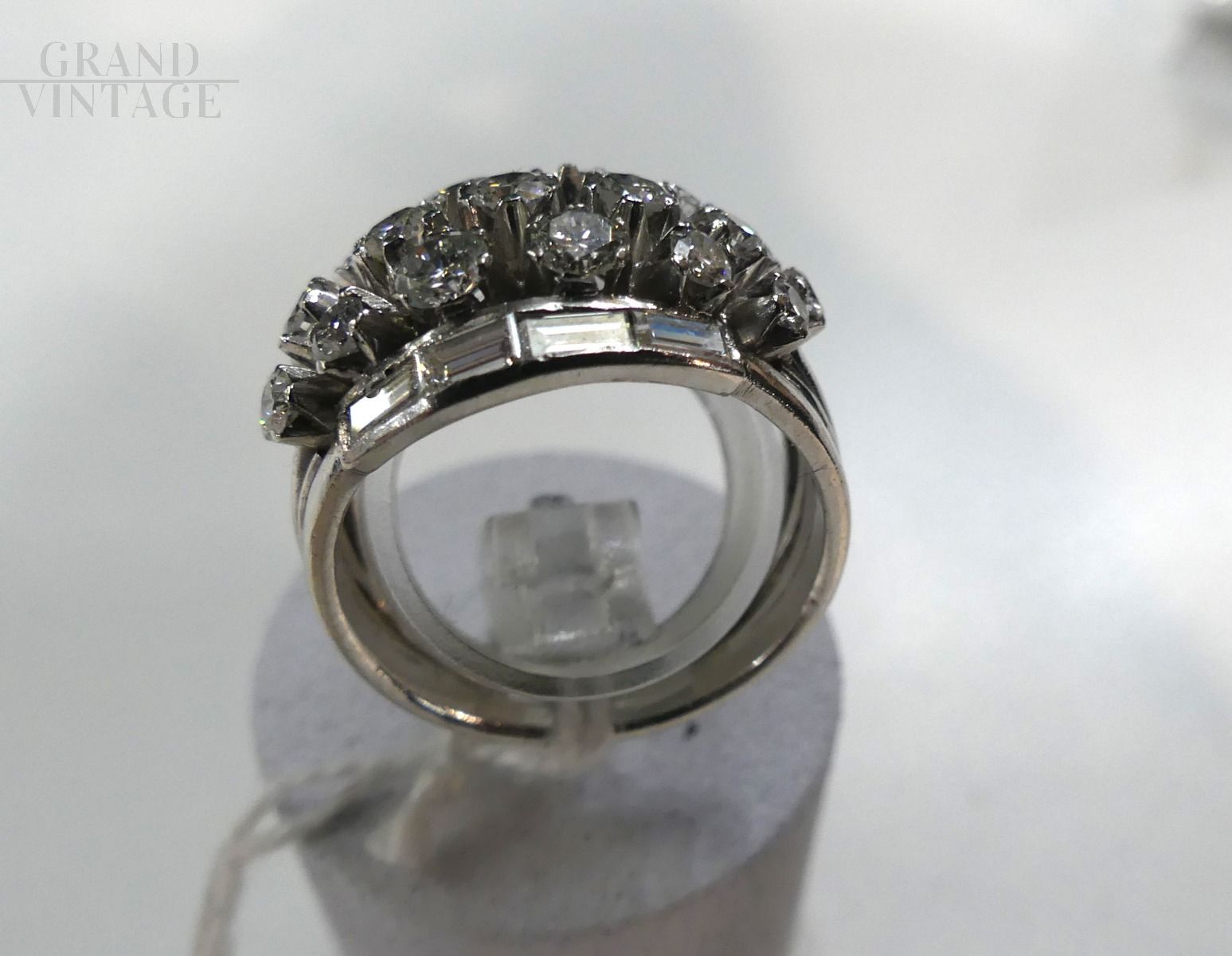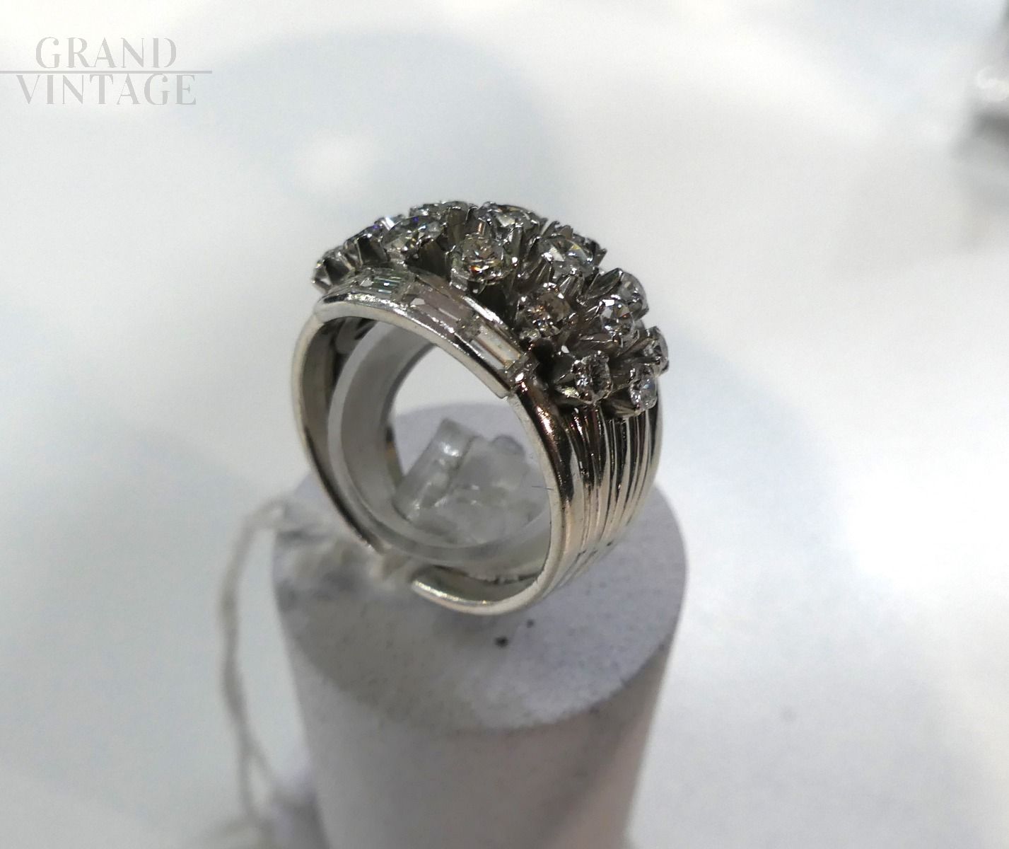 Anello vintage luxury in oro bianco 18 kt con diamanti 1,46 carati, anni '70. Misura italiana 14, misura francese 54, diametro 1.72 cm.