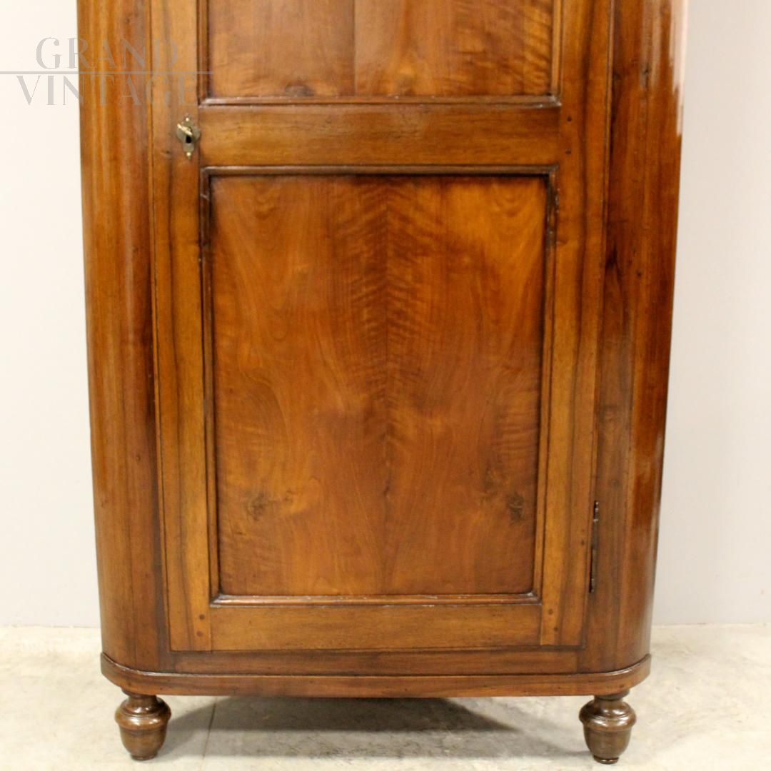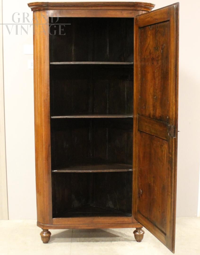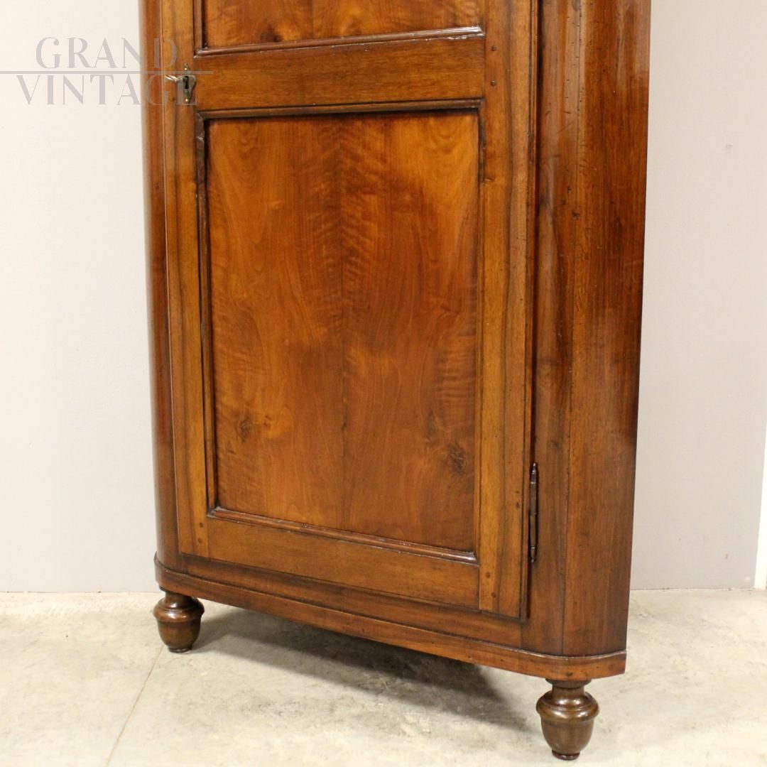 Credenza angoliera stipo cantonale antico di epoca Luigi Filippo in noce massello, proveniente dall'Italia - Emilia Romagna della prima metà dell''800. Restaurata.