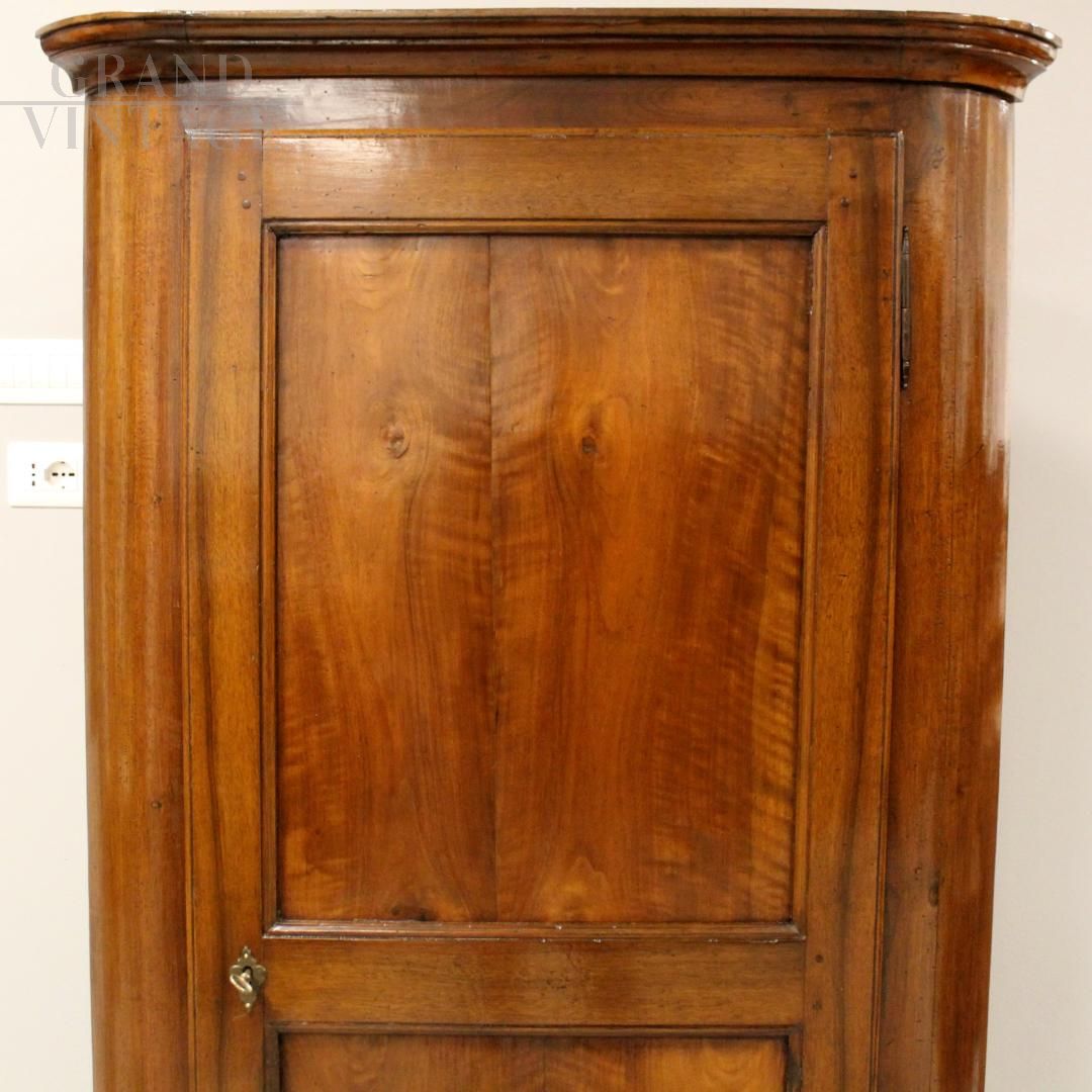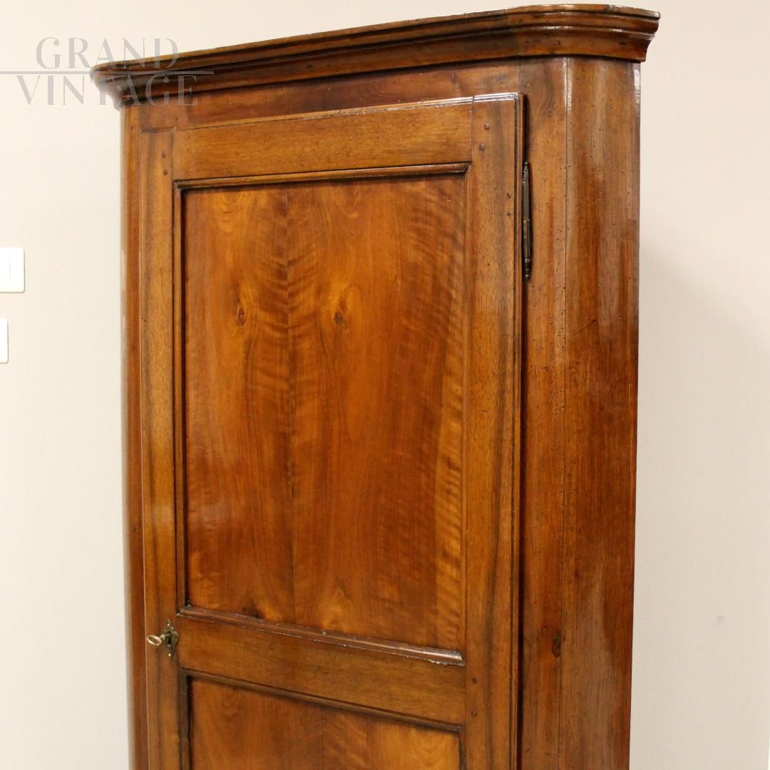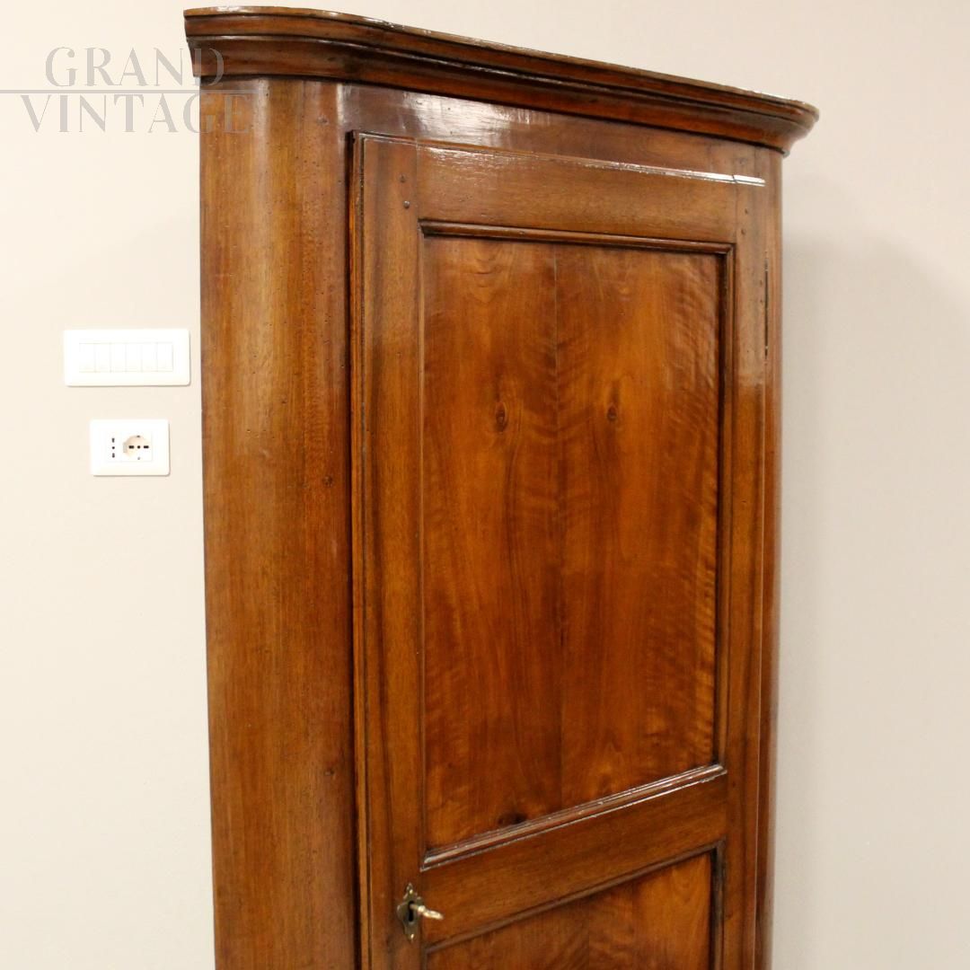 Credenza angoliera stipo cantonale antico di epoca Luigi Filippo in noce massello, proveniente dall'Italia - Emilia Romagna della prima metà dell''800. Restaurata.
