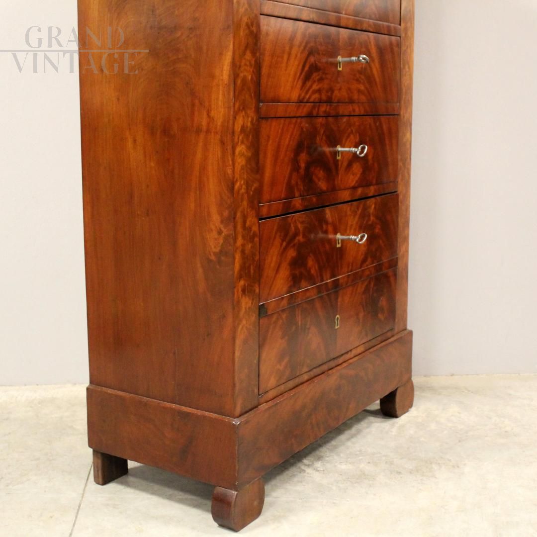 Antica cassettiera settimanale Luigi Filippo in mogano '800