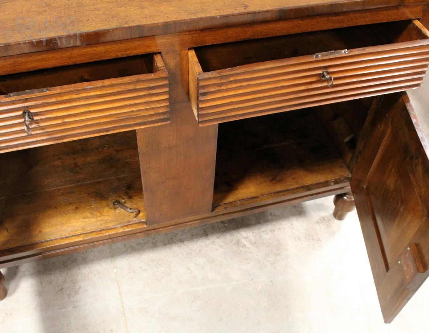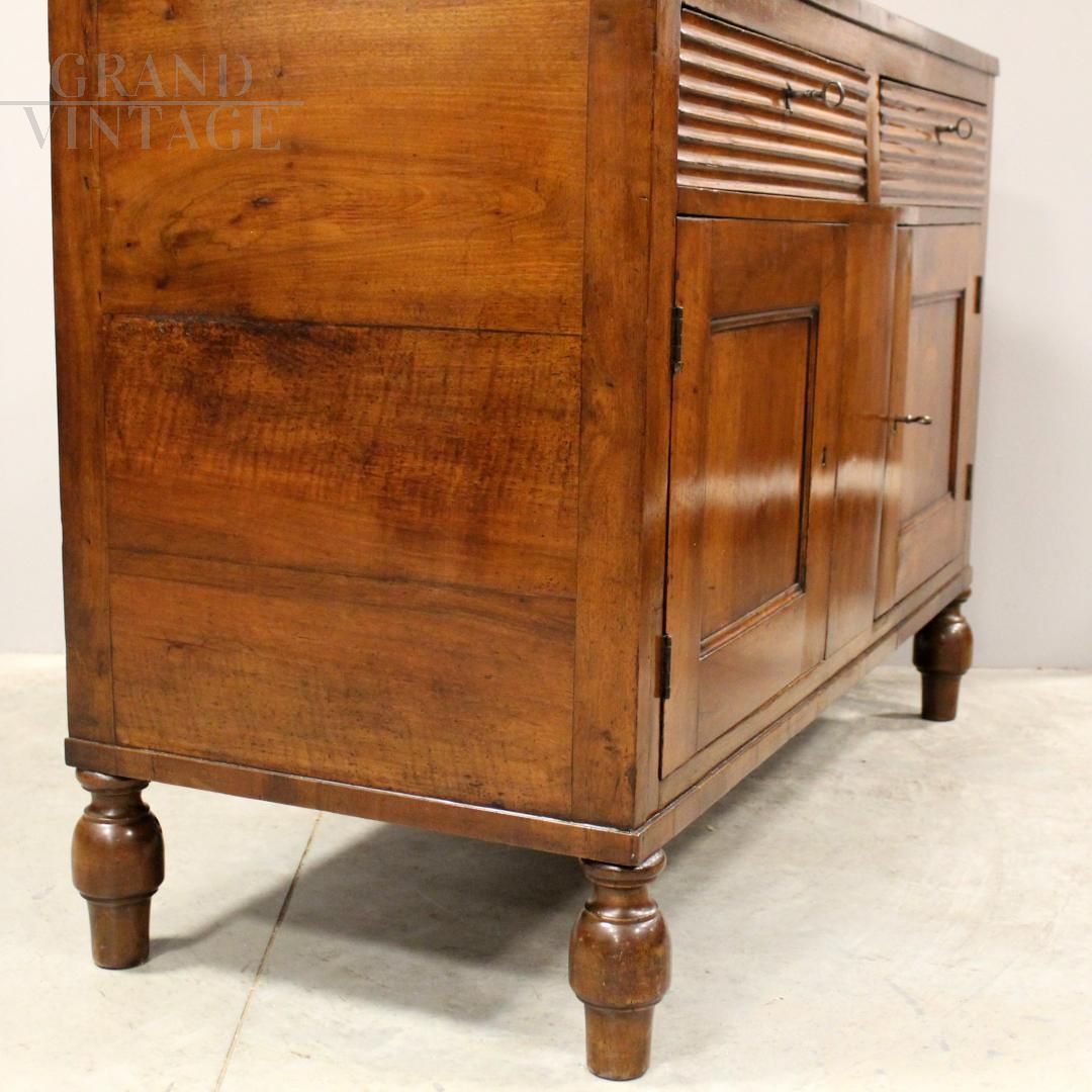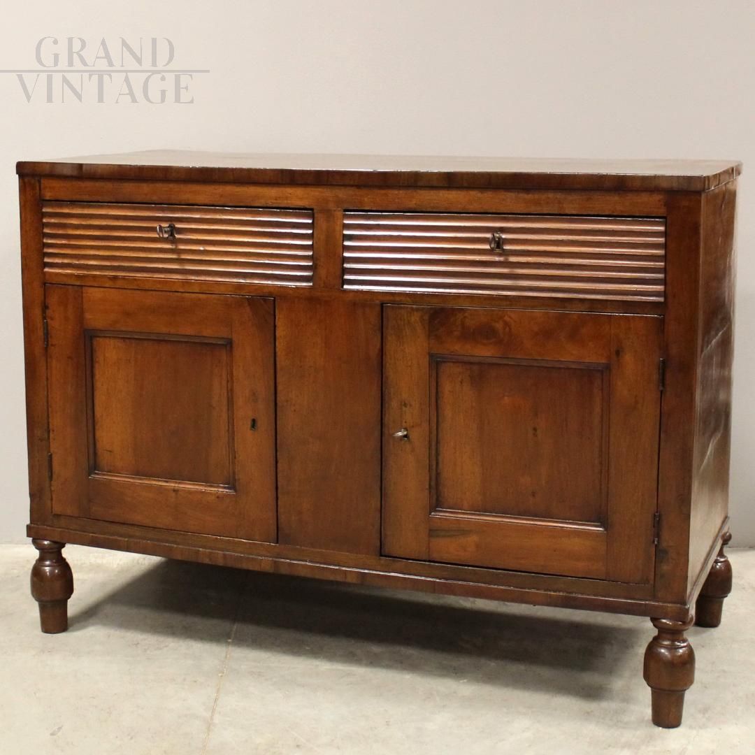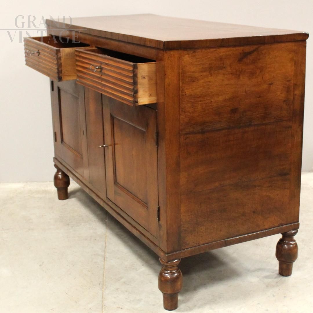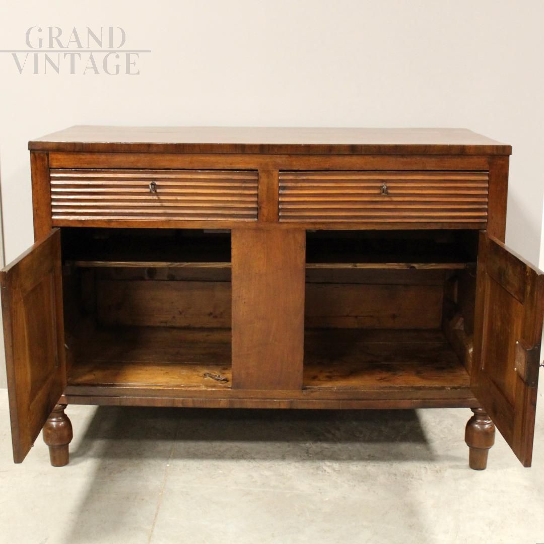Antica credenza Carlo X in noce con cassetti scanalati, Italia '800