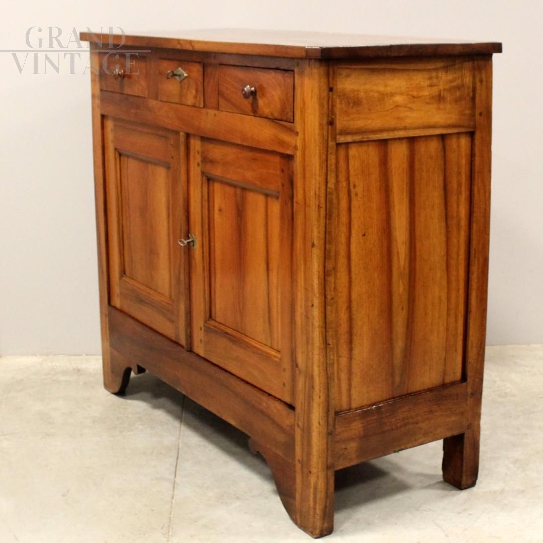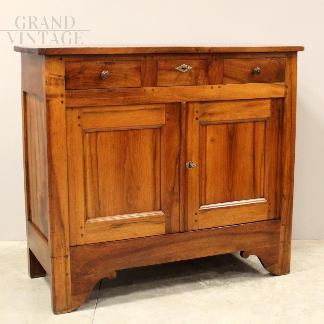 Credenza antica rustica di epoca Luigi Filippo in noce massello dalle dimensioni contenute, epoca metà '800, restaurata,