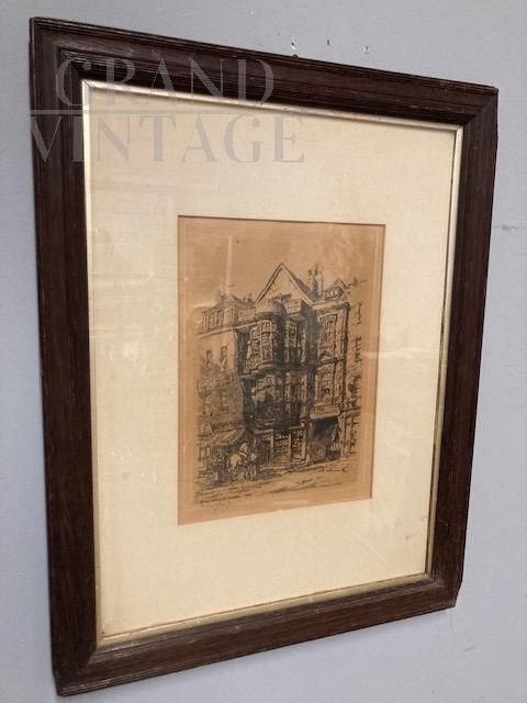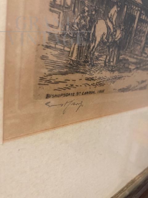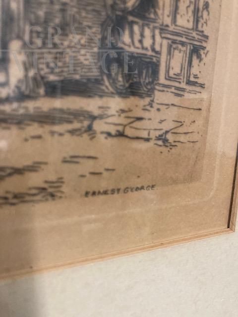 Antica incisione inglese del 1882 firmata George Ernest raffigurante stazione postale, nel retro si può trovare il certificato di autenticità della galleria.