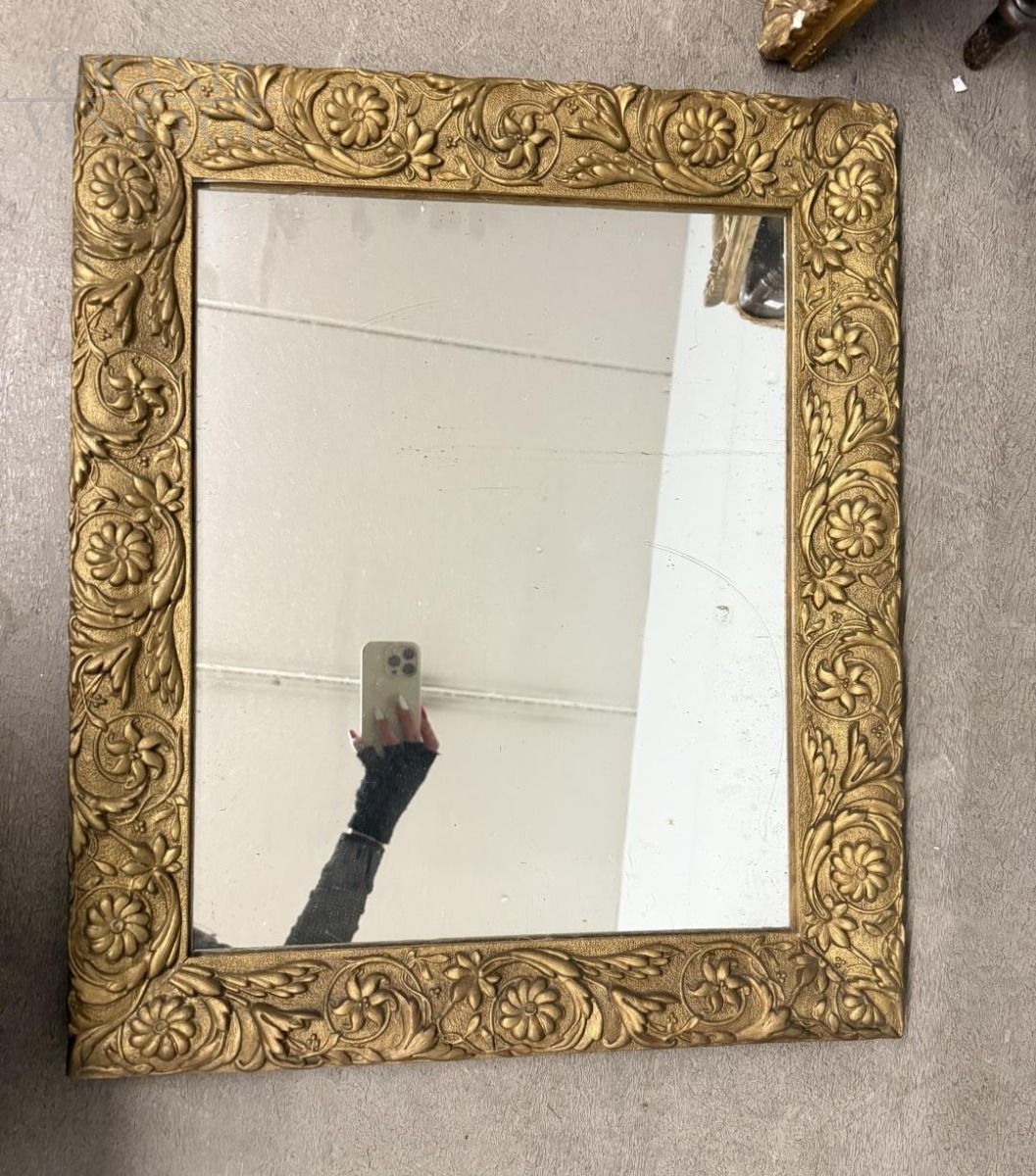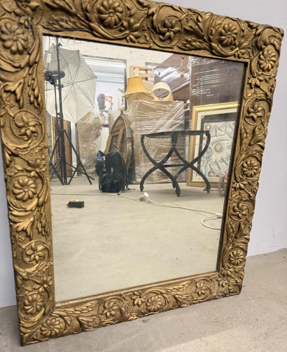 Antica specchiera dorata con intagli floreali, XIX secolo